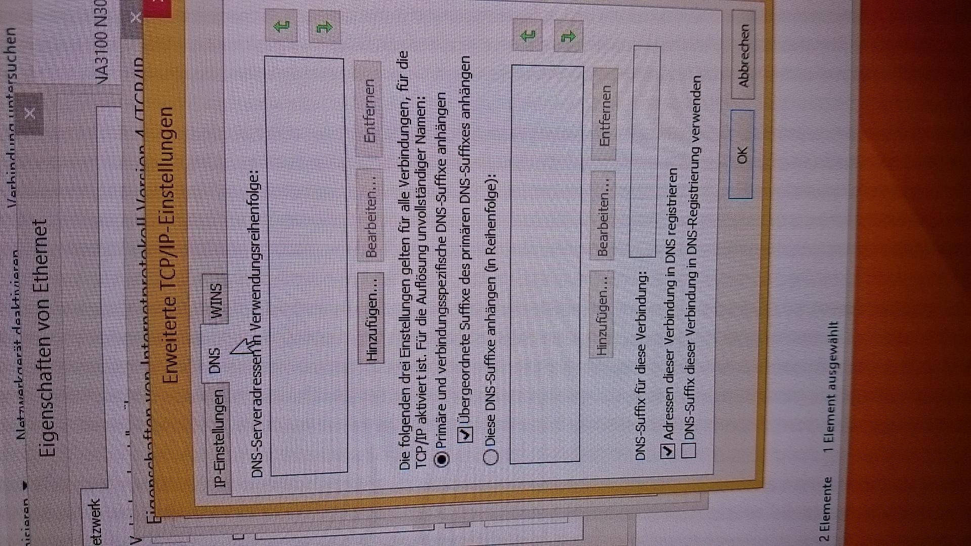 Ich habe verschiedene Anleitungen verwendet, leider nur mit mäßigen Erfolg , ich habe jetzt eine Verbindung aber immernoch begrenzt. Die Berechtigungen habe iche erteilt "HKEY_LOCAL_MACHINE\SYSTEM\CurrentControlSet\Control\Nsi\{eb004a00-9b1a-11d4-9123-0050047759bc}\26". Dieser Ordner ist auch nicht mehr verfügbar. Manuelle Ip habe ich auch versucht leider ohne Erfolg. Ich habe euch Bilder eingefügt mit meinen Einstellungen.