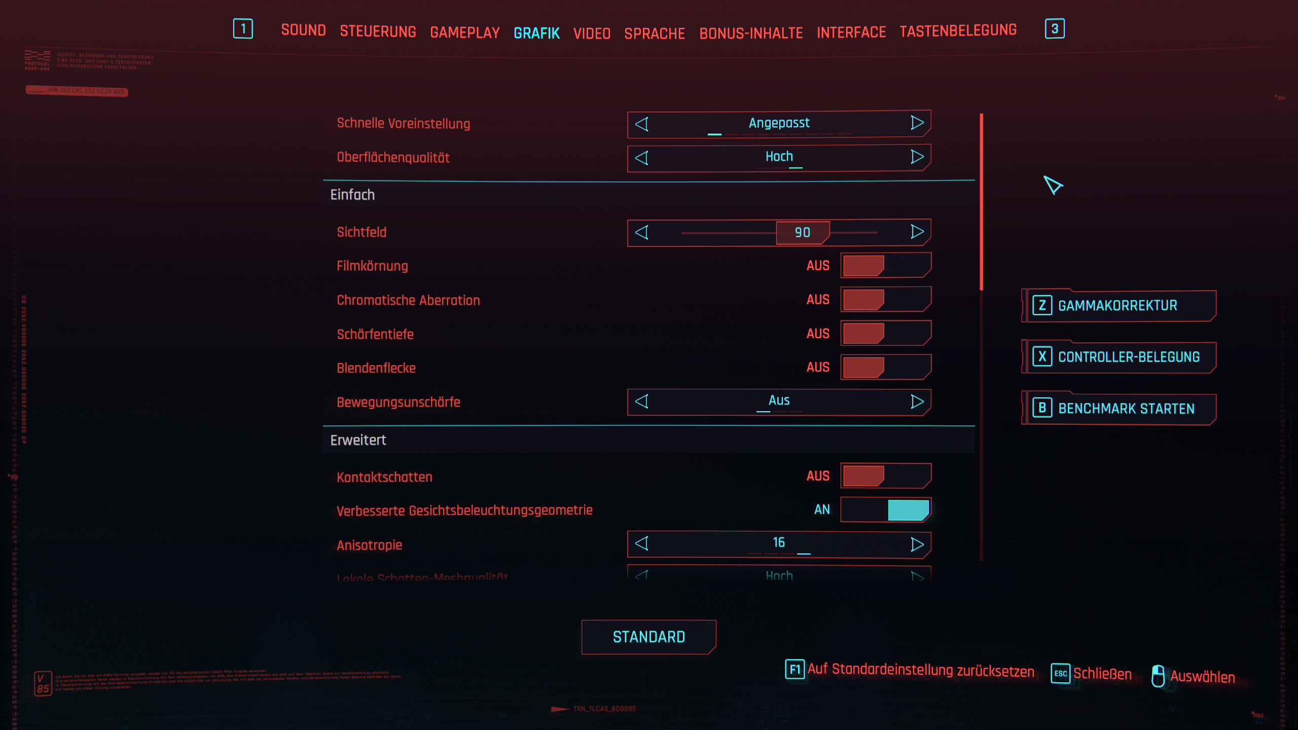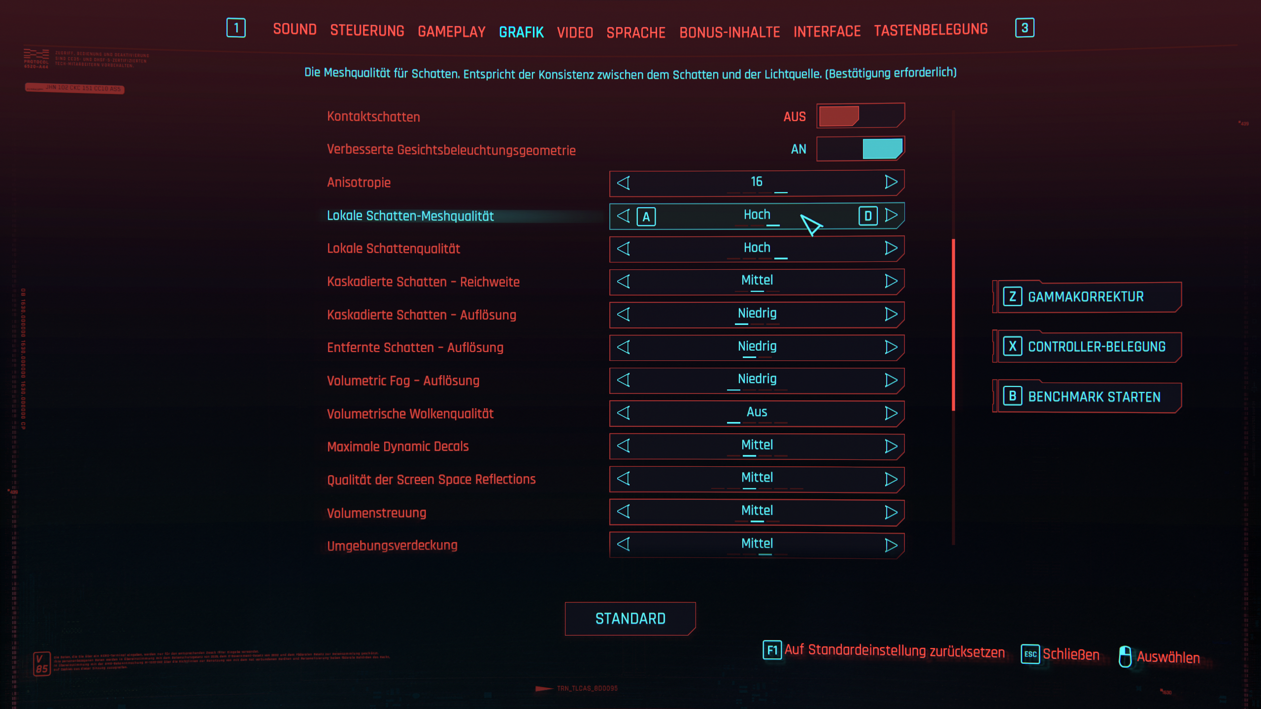 Screenshots zu den Aufnahmen und Grafikeinstellungen sind aufgelistet.