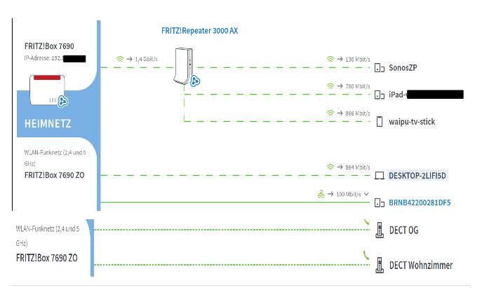 Das könnte erklären, warum das 2. sowie 1. OG fast allein von der F!B WLAN-versorgt sind, allerdings eben auch, dass auf den weiter entfernten Positionen des 1. OG sowie im EG die Versorgung praktisch aufhört. Dahingehend könnte die zuvor beschriebene kaskadierte Konstellation verbesserte WLAN-Versorgung ermöglichen, wohin auch Deine Fragen aus #46 abzielen.