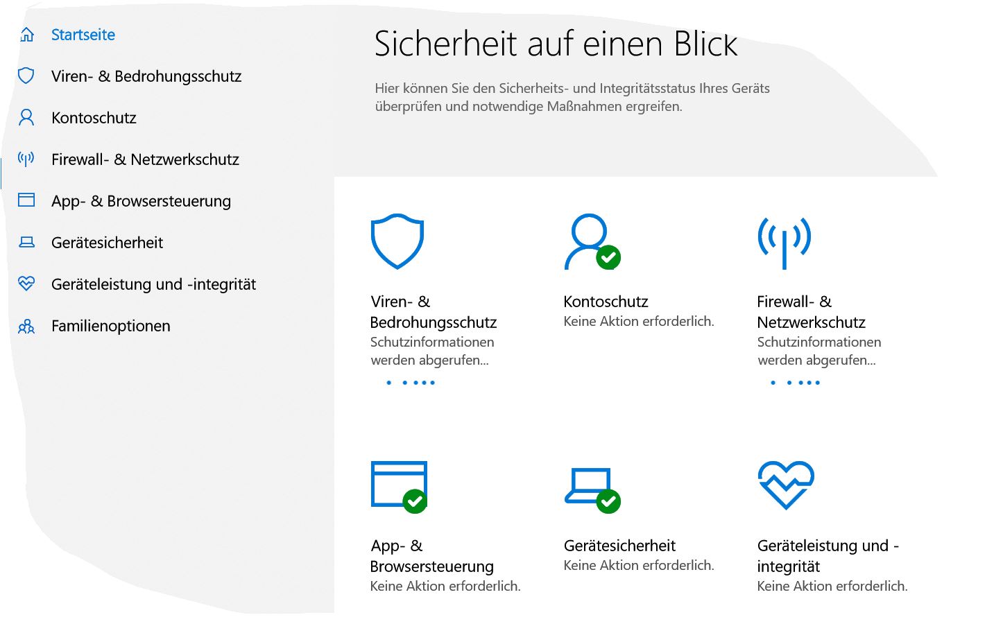 bei jedem start von win 10 habe ich im sicherheitscenter für ungefähr 2 minuten die meldungen "sicherheitsinformationen werden abgerufen", siehe screenshot. ist das normal? b.z.w. wie bekomm ich es weg?