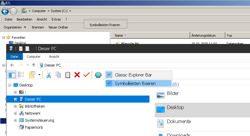 Die letzte Ecke wo ich nach gesucht hätte - weil ich so was wohl auch seit es das gab nie angefasst hatte.SPB schrieb:Entspricht dem Kontextmenü "Symbolleisten fixieren" Ein/Aus.