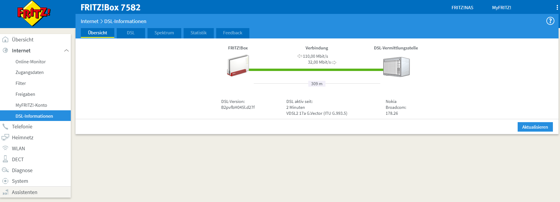 Kontakt mit der Störannahme bringt mir nichts, da die Personen am Telefon meine Leitung resetten, die danach wieder irgendwann abbricht. Ein Wechsel meiner FritzBox von 7360SL (sehr altes Modell) auf eine 7582 habe ich auch vollzogen und mit neuster Firmware versehen. Dies brachte leider auch keine Besserung.
