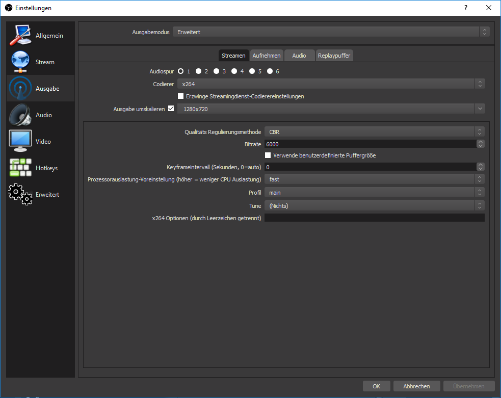 Jetzt wären meine Überlegungen, ob ich OBS eine Anzahl Kerne fest zuweisen soll oder ob es Einstellungen sind, vielleicht irgendwelche Parameter, die ich nicht kenne, die vorgenommen bzw. eingefügt werden müssten in den erweiterten Einstellungen von OBS. Oder ob dies tatsächlich ganz normal ist.