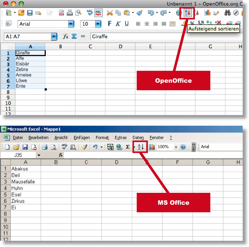 Anbei ein paar nette Screenshots von OpenOffice und MS-Office.