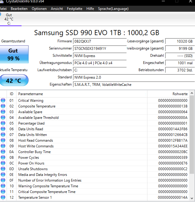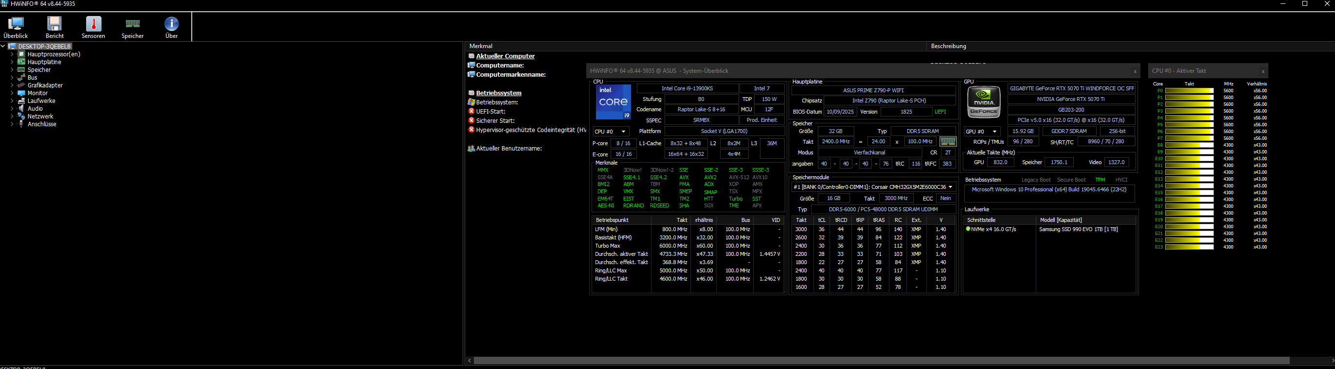 - Arbeitsspeicher (RAM): Corsair Vengance 32 GB DDR5 läuft grad auf 4800MHz