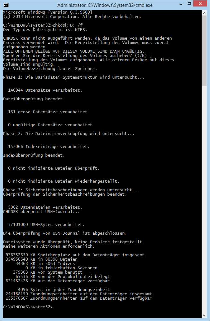 Habt ihr eine Ahnung was das Problem sein könnte? CHKDSK habe ich ohne Erfolg schon laufen lassen. Ich habe nur viele Daten auf D: und kann die jetzt nicht einfach so mal schnell formatieren :-/