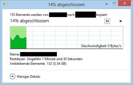 Beispiel beim Kopieren - nach ein paar Sekunden hängt es sich auf und geht nicht mehr weiter: