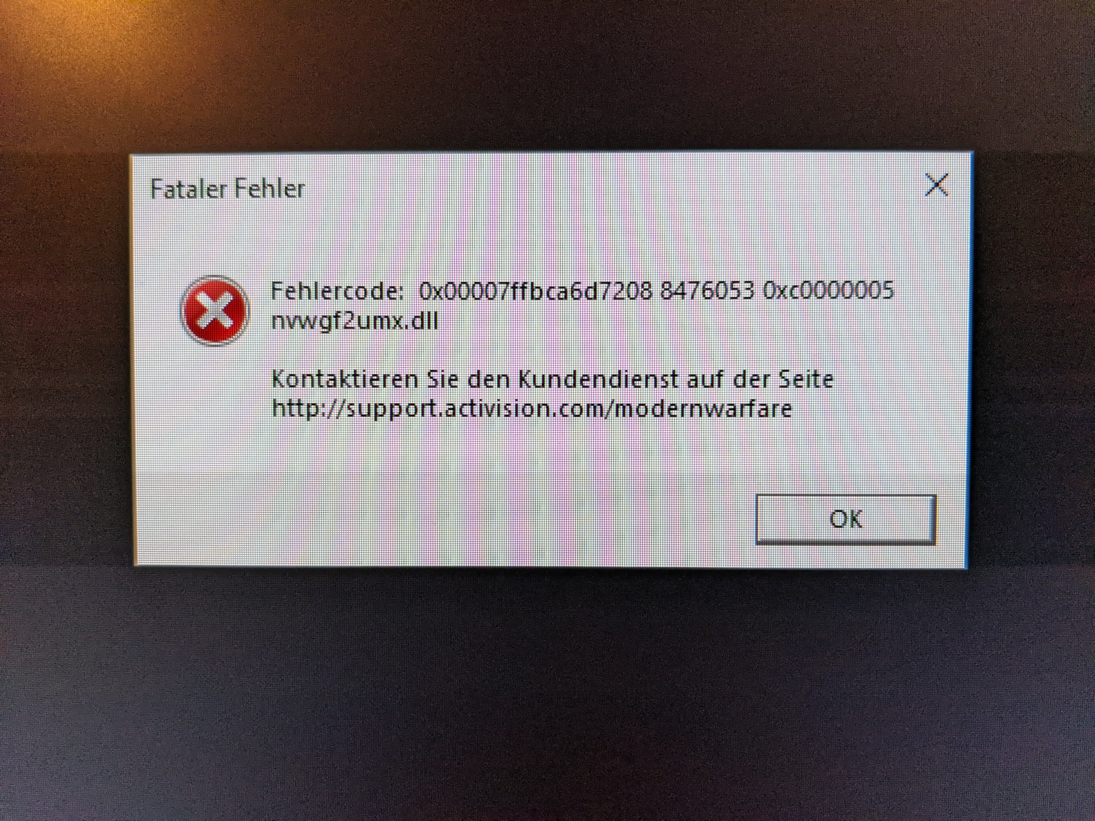 Manche Spiele lassen sich grundsätzlich nicht starten (z.B. CoD Warzone, Battlefront II, RocketLeague). Meistens stürzt das Spiel ohne jegliche Fehlermeldung ab noch vor dem ersten Loading Screen. Manchmal gibt es Fehlermeldungen, die ganz unterschiedlich aussehen können (s. Anhänge). Manchmal bleibt Black-/Greenscreen mit Powerbutton als einzigem Ausweg.