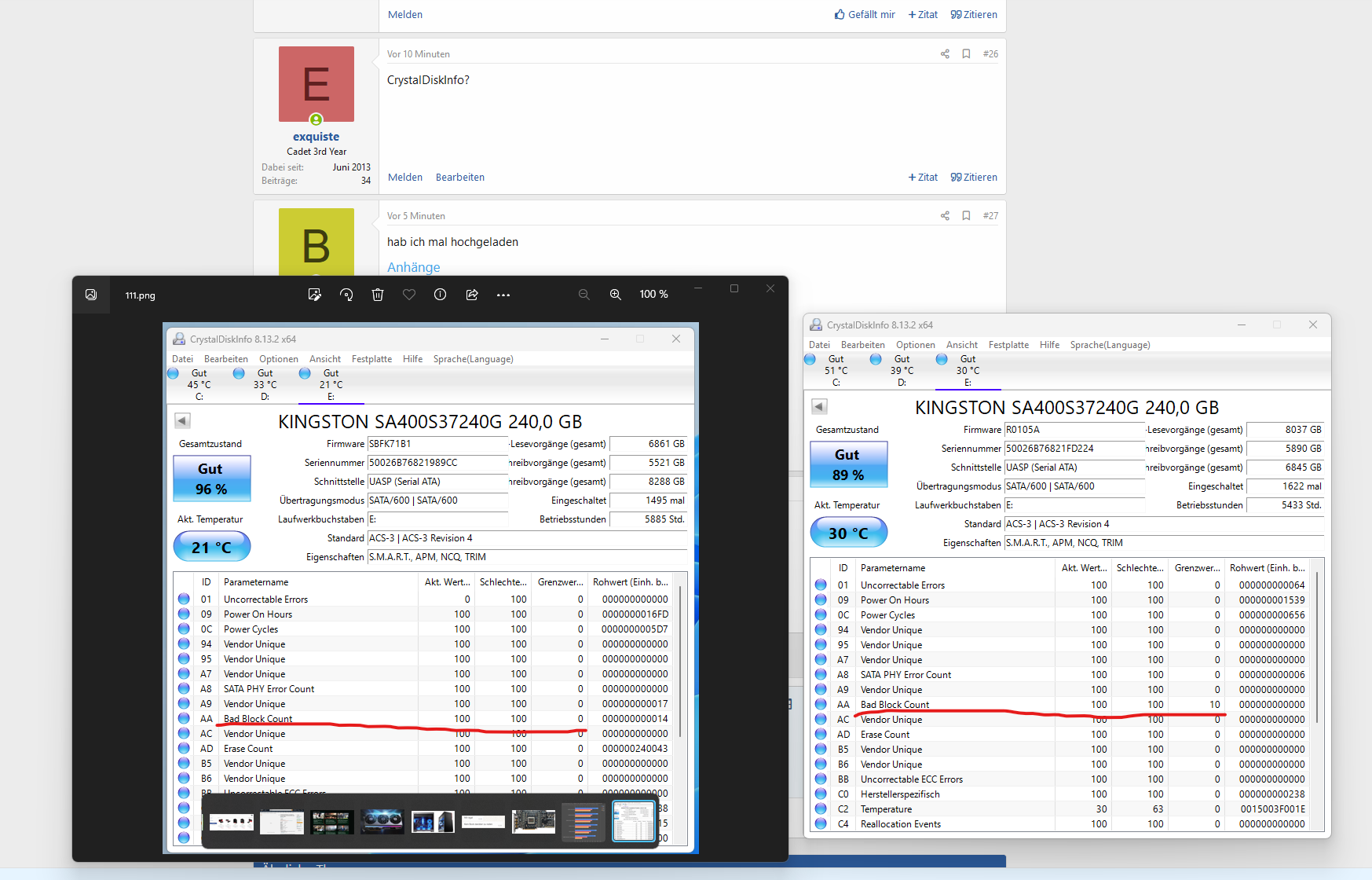 Die eine hat ebenfalls wie deine BadBlockCount10 und wirft sich manchmal aus...