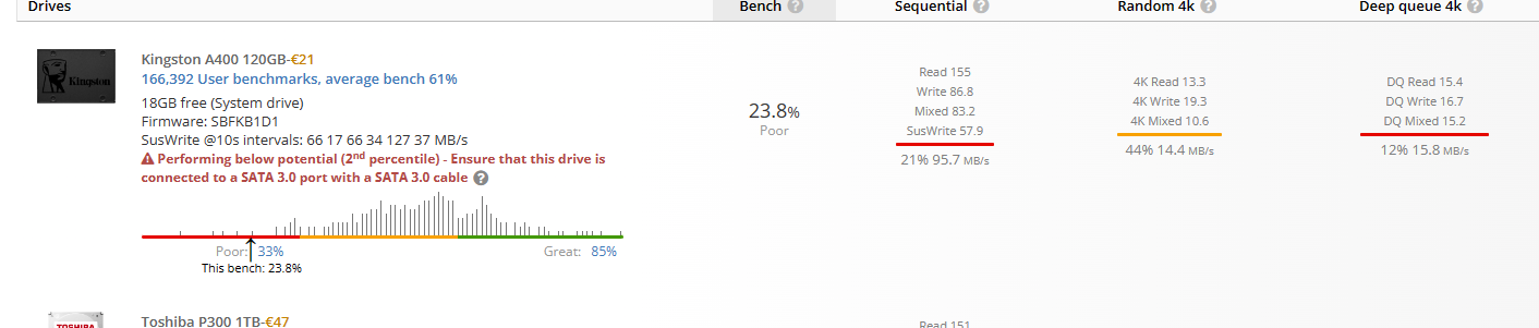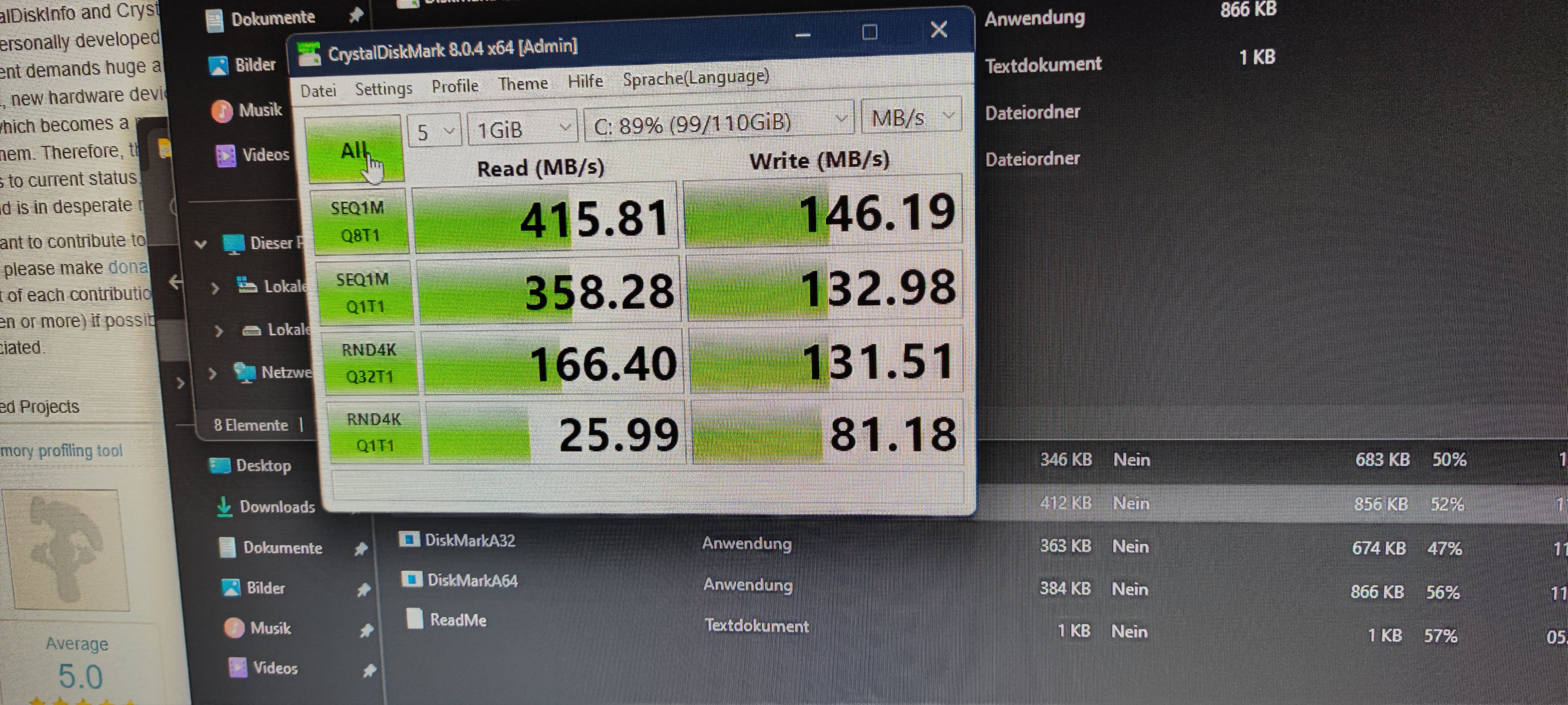 CrystalDiskMark sollte dann aber auch auf der HDD durchgeführt werden, da werden wohl die Games liegen. Die SSD ist ja nur 120 GB groß und sollten da die Games liegen wird sie wohl sehr voll sein und das mögen SSDs gar nicht gerne.exquiste schrieb:Bevor du ne SSD bestellst,