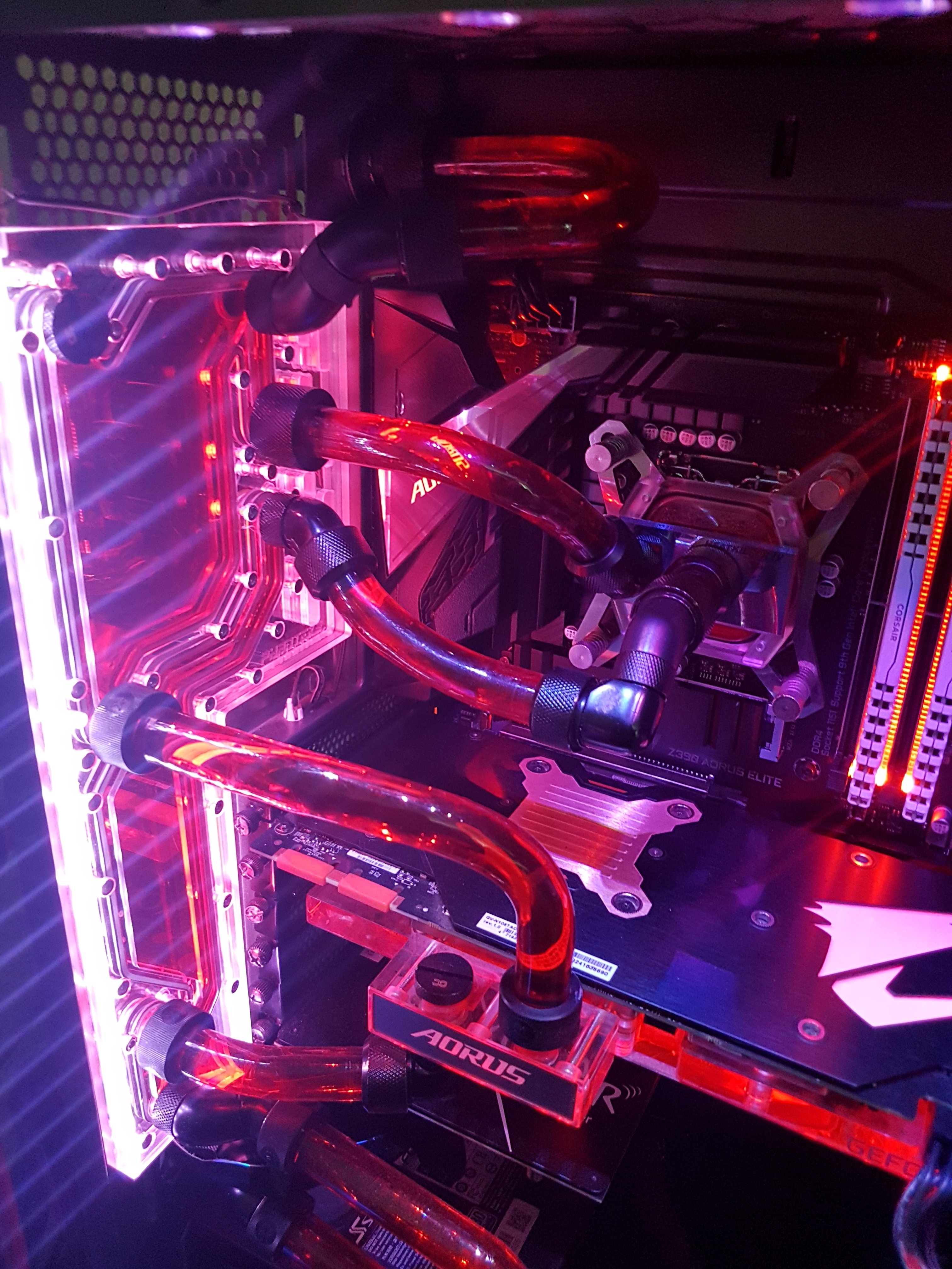 im Kreislauf ist die GPu/Cpu (Heatkiller IV) habe bei der Gelegenheit direkt den 7700K gegen 9900K getauscht