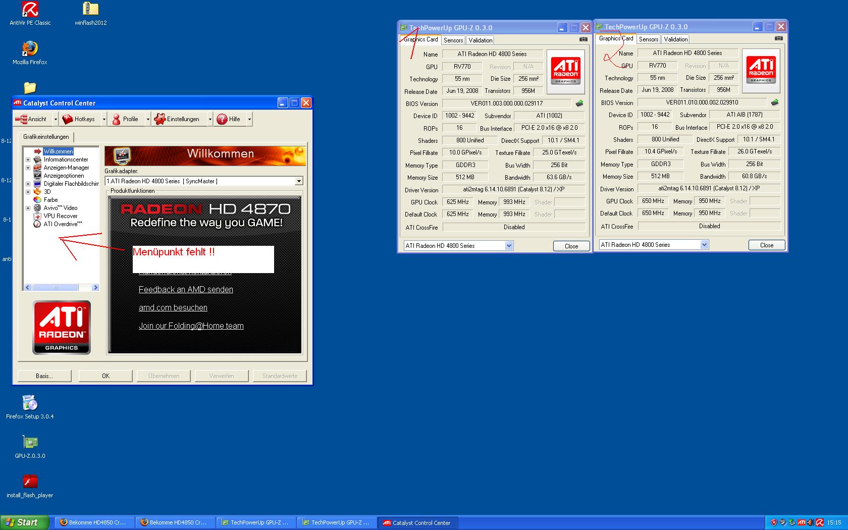 Ich dachte mir also, dass es eventuell mit den verschiedenen Biosen der Karten zusammmenhängt und wollte mit ATI Winflash auf beide das gleiche bios flashen : Fehlanzeige : Fehler in den Subsystem ID's (weiß einer, was es damit auf sich hat ?)