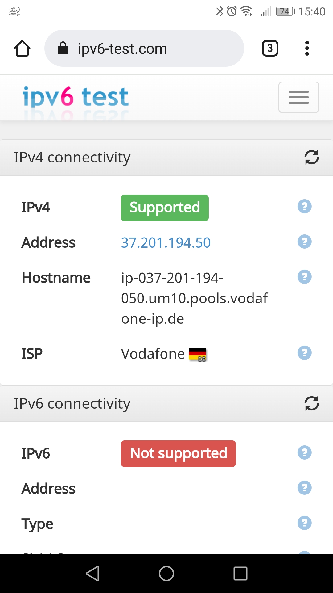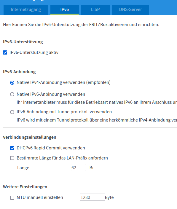 Wenn ich die Verbindung auf der Seite https://ipv6-test.com/ teste heißt es aber immer ich hätte keine IPv6 Connection.
