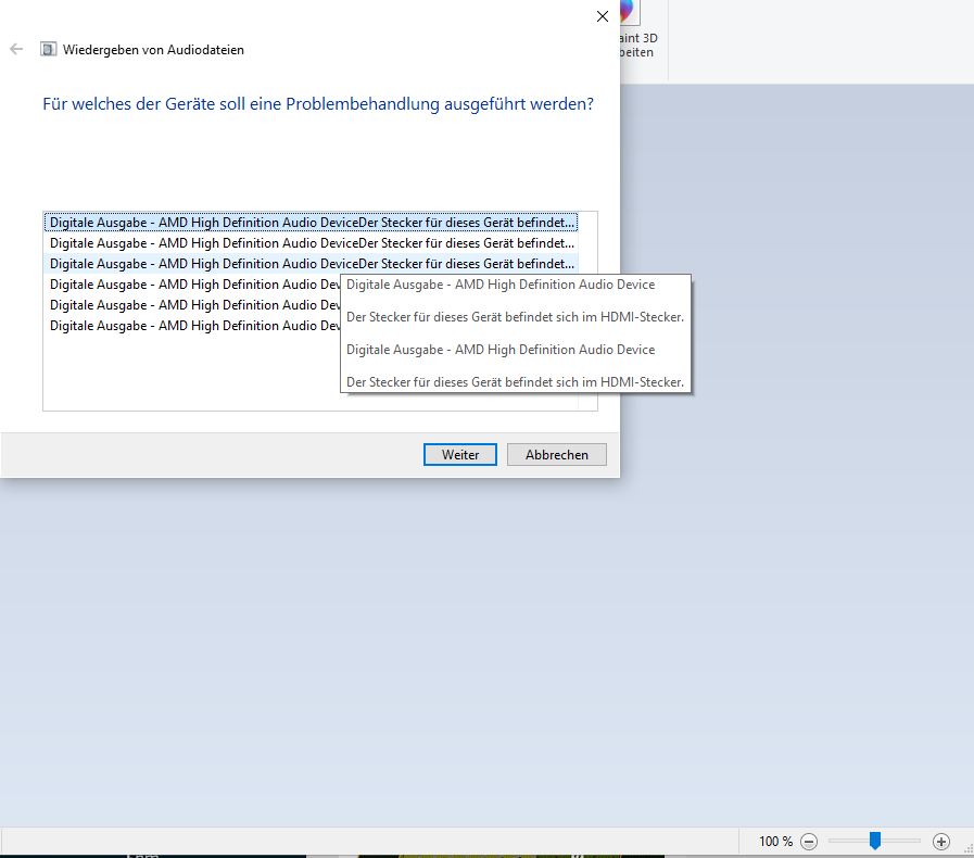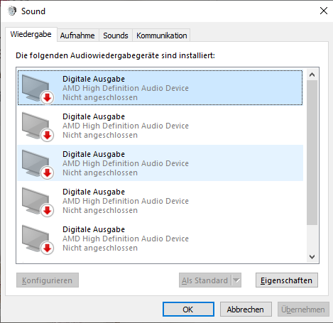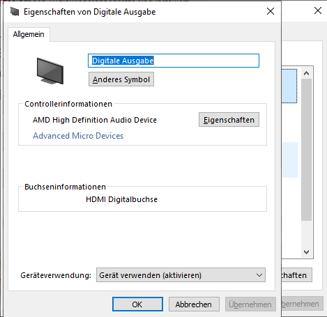 Die Problembehebung sagt "Digitale Ausgabe - AMD High Definition Audio DeviceDer Stecker für dieses Gerät befindet sich im HDMI Stecker"