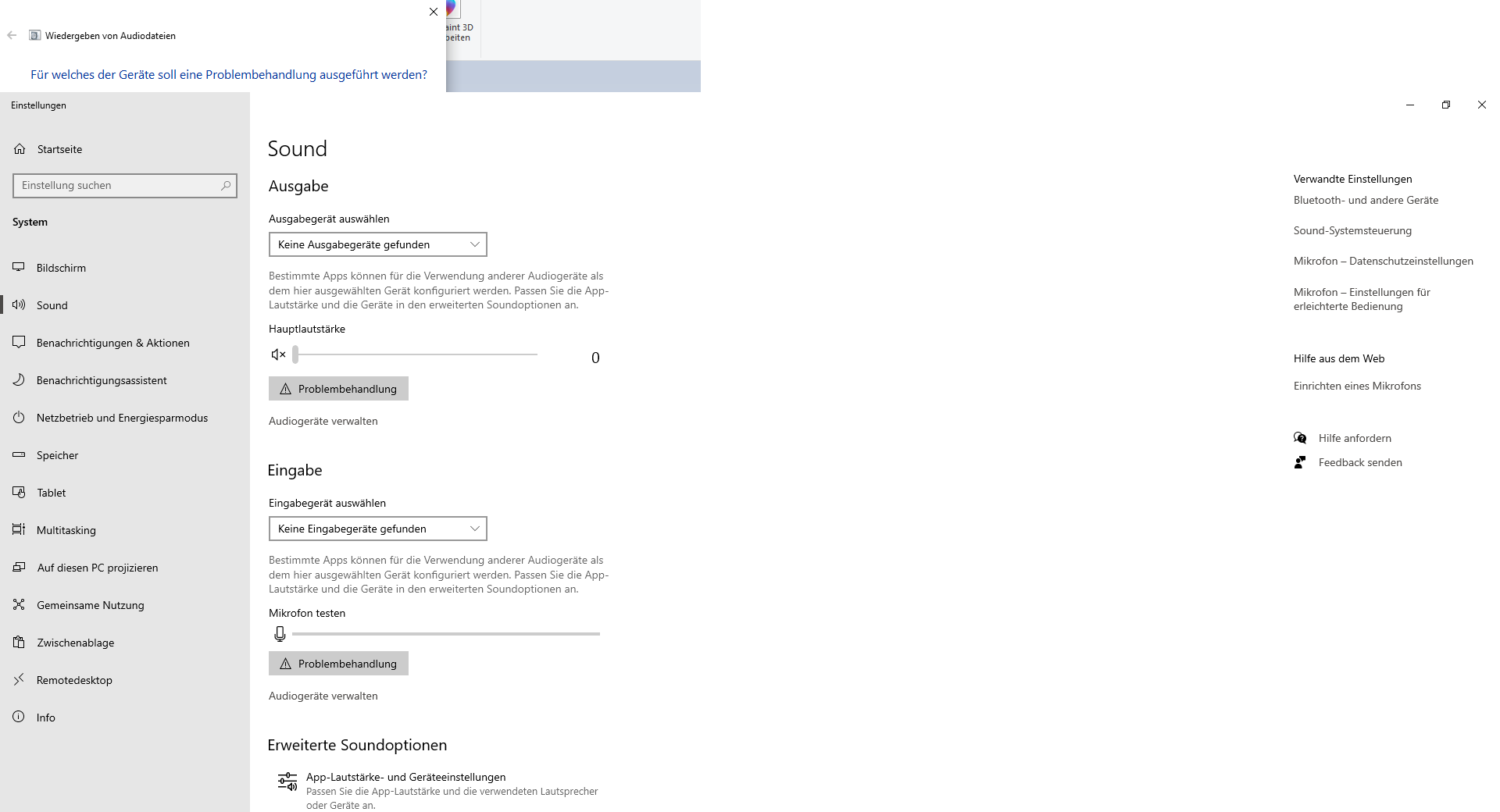 Ich habe die angegeben Hardware. Mein Problem ist das er Sound keinen Sound über die onboard Soundkarte ausgeben ausgeben will. Es wurde kein Ausgabegerät erkannt. In den Einstellungen unter Sound wird mir angezeigt "AMD High Definition Audio Device" nicht angeschlossen.