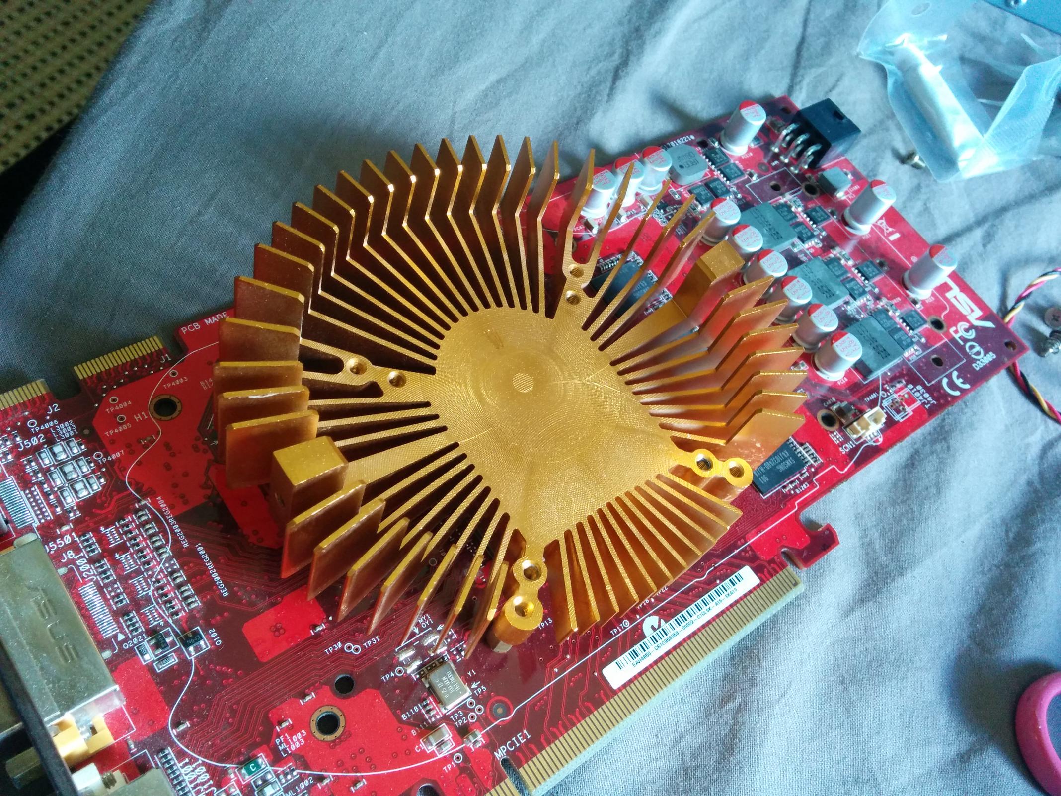 als erstes noch mal kontrollieren, ob wirklich alle Schrauben ab sind! Wenn ja, dann Karte in einen Gefrierbeutel tun ordenlich zu machen und über Nacht ab damit in die Gefriertruhe.