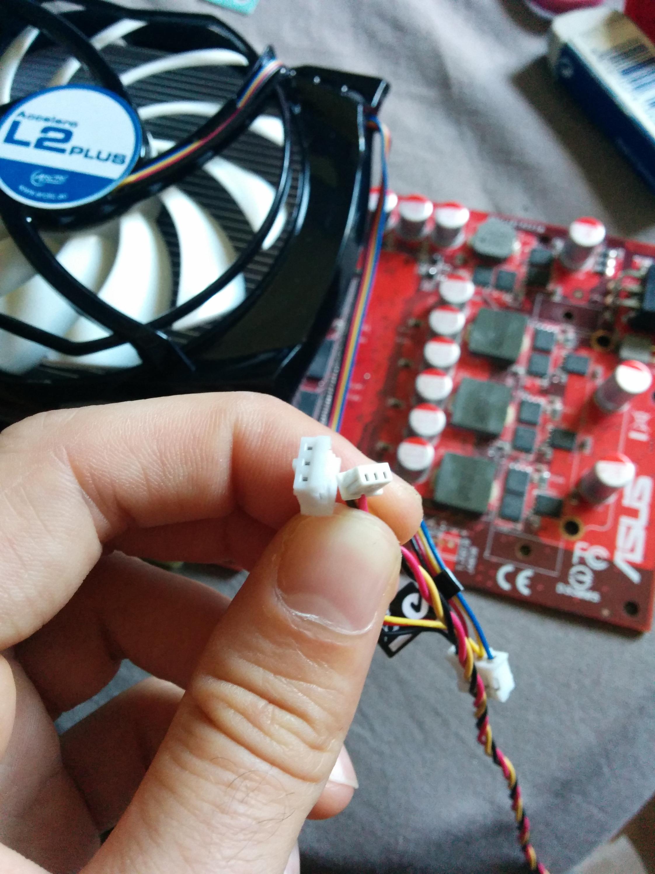 Da hätte man sich eben vorab informieren sollen, ob der Stecker passt... Nimm doch einfach den Molex-Adapter wie hier beschrieben (unter Support und "Verwendung des 4-Pin Lüfteradapters"): http://www.arctic.ac/eu_de/accelero-l2-plus.html
