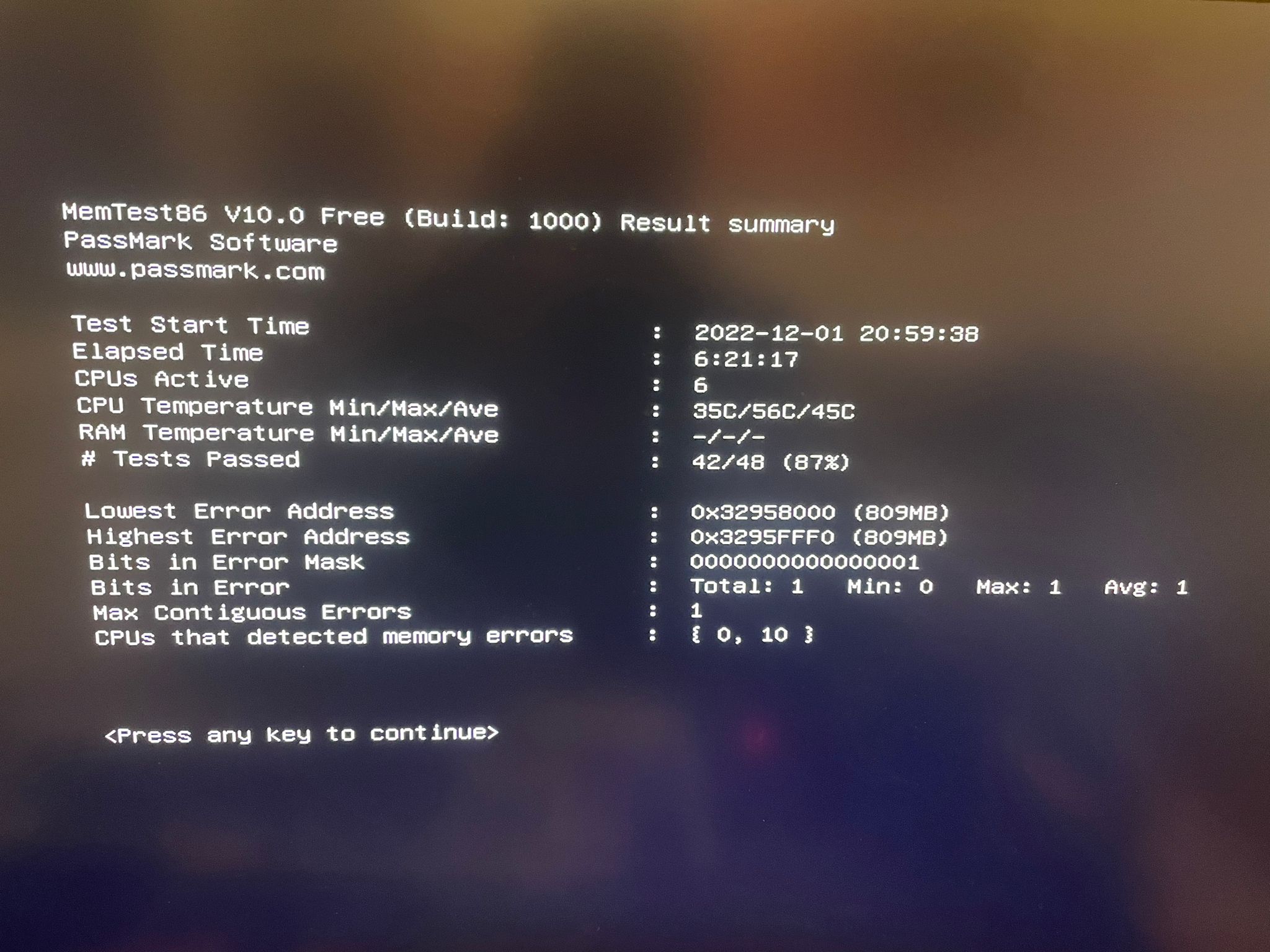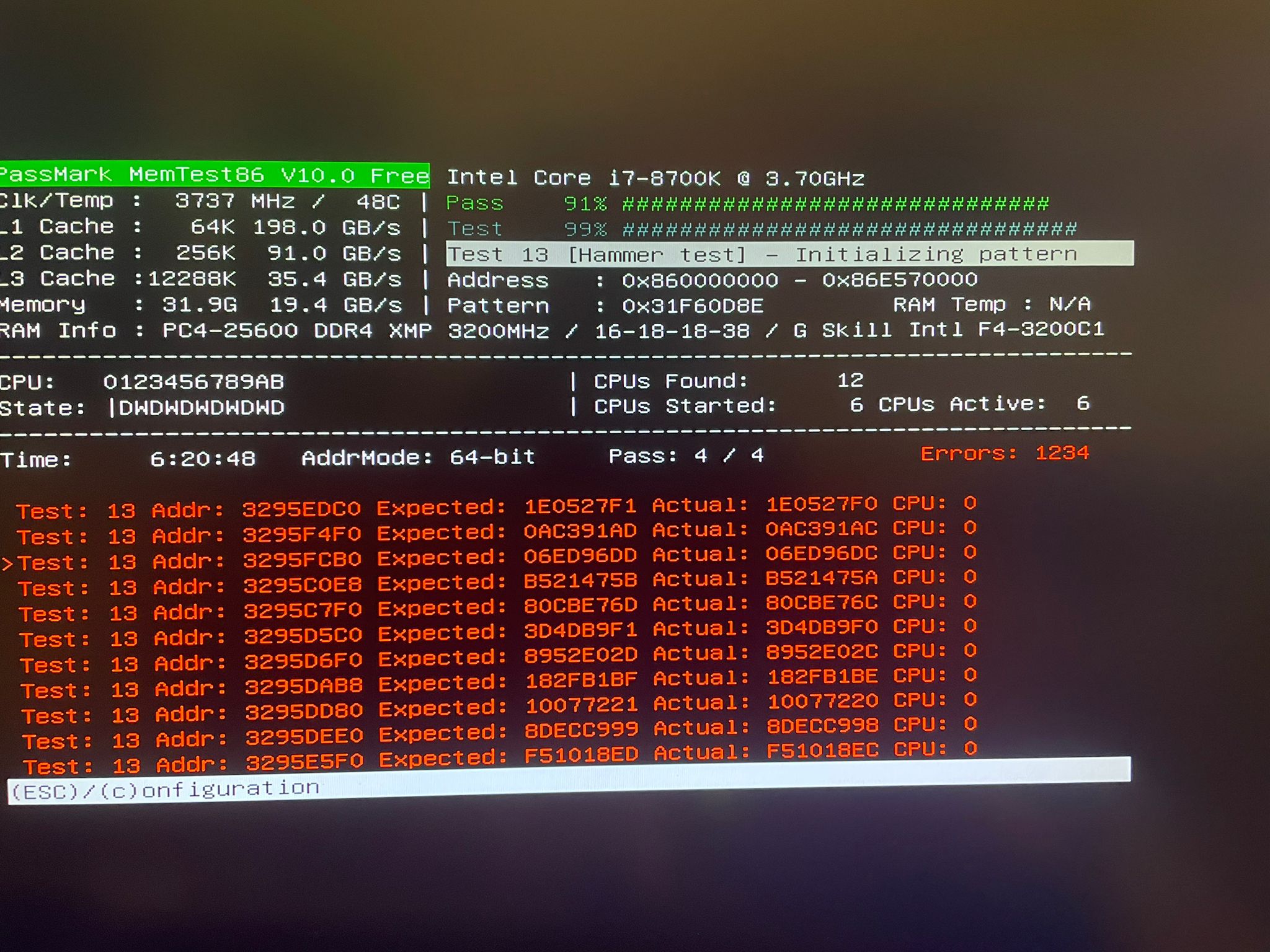So, nach über 6 Stunden Memtest ist das Ergebnis relativ eindeutig würde ich behaupten.