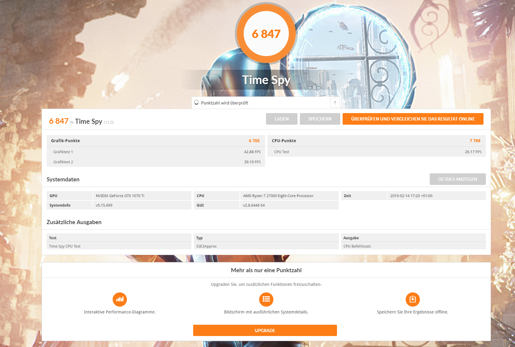 Hups verschaut... https://www.3dmark.com/search#/?mod.../spy/P/2316/1164/13885?minScore=0&cpuName=AMD Ryzen 7 2700X&gpuName=NVIDIA GeForce GTX 1070 Ti&gpuCount=1