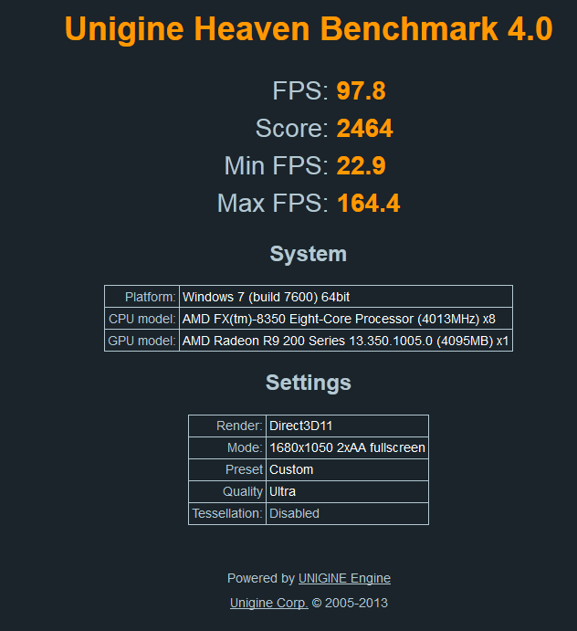 Deshalb meine Frage, ob jemand mit einem vergleichbaren System (sollte es ja aktuell viele geben) ein Heaven 4.0 Benchmark Ergebnis posten kann um zu vergleichen.