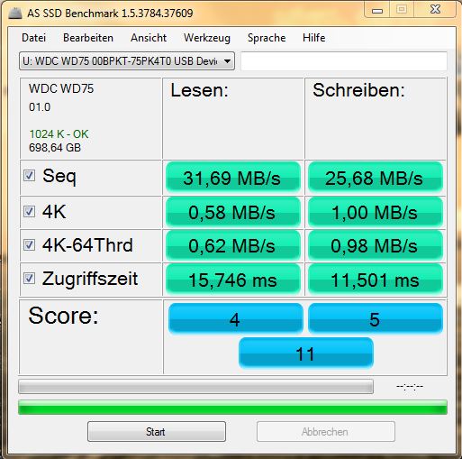 Sehr gute Geschwindigkeit für diesen Preis, wobei ich höhere Schreibgeschwindigkeiten erwartet habe. Jedoch ist die Kapazität um 300MiB zu gering, was ich sehr frech finde.