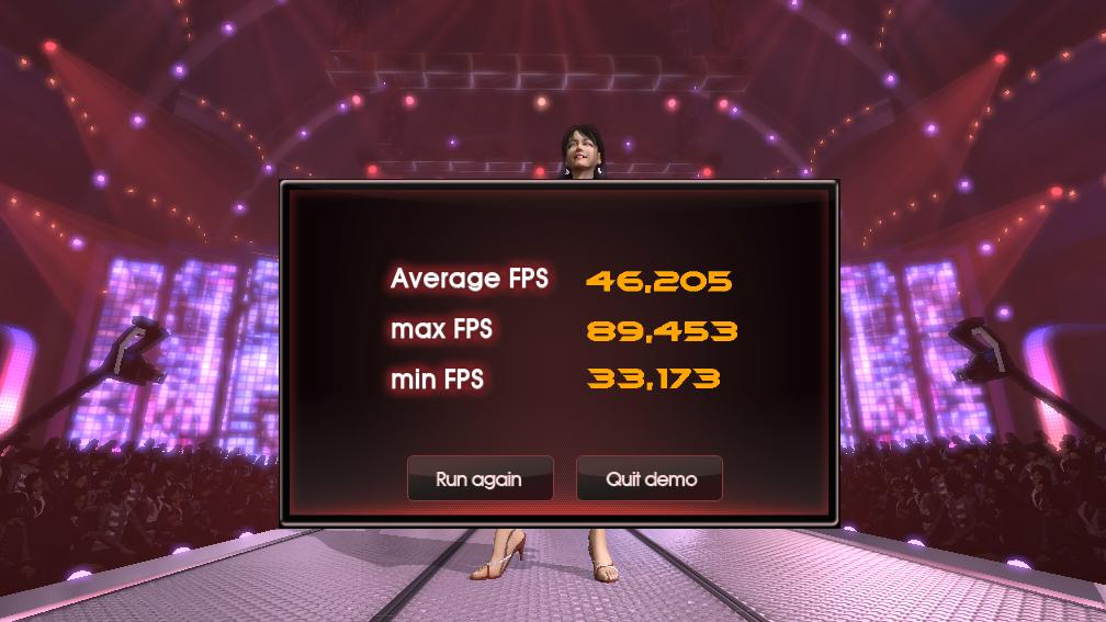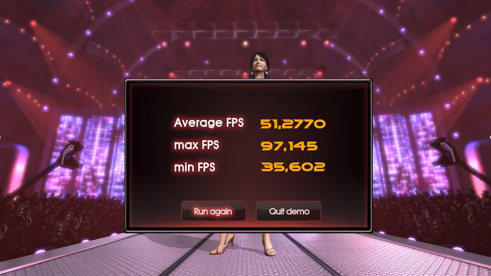 Auf der HP von NVidia.com kann man unter der Rubrik "PhysX - Power-Pach" die Demo von "Nurien" herunterladen. (für XP ist SP3 erforderlich) weiteres ist auf der NVidia HP zu entnehmen. Nach der sehenswerten Modeschau gibts im Anschluss auch noch eine kleines FPS-BenchmarkErgebnis. Der Test dauert nicht lage. Wäre mal interessant was so eure Systeme hergeben. Anbei mein Ergebnis: