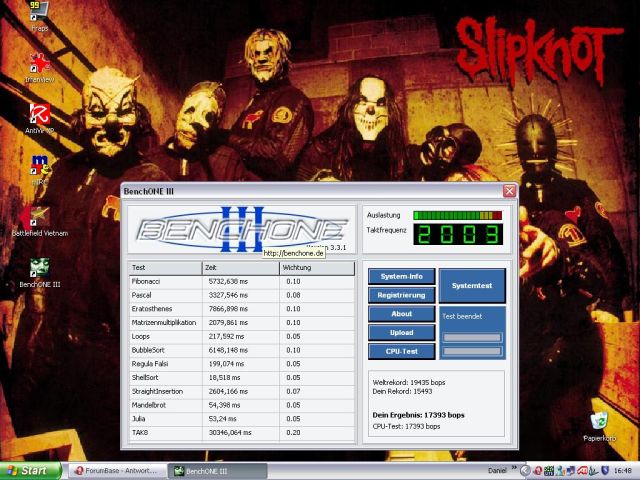Sys: AMD Athlon XP 2400+@2600+ (166FSB), 1024DDR PC333, 120GB S-ATA Platte.