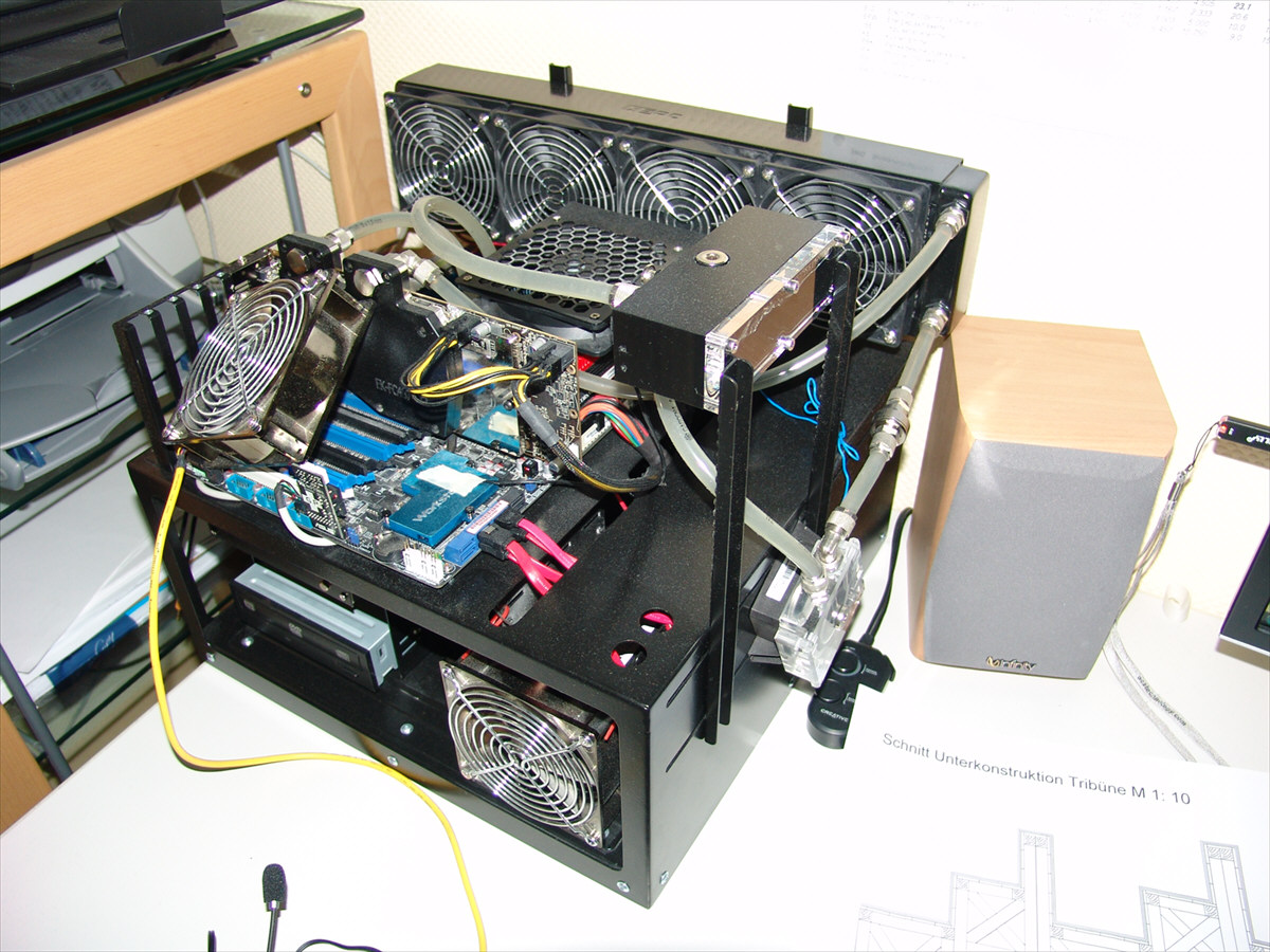 Gleichzeitig moechte ich meinen Rechner moeglichst "offen" haben. Einmal zur Ueberwachung und andererseits weil bei mir die Hardware recht oft wechselt und das Ganze im normalen Gehaeuse ganz schoene Fummelarbeit ist.