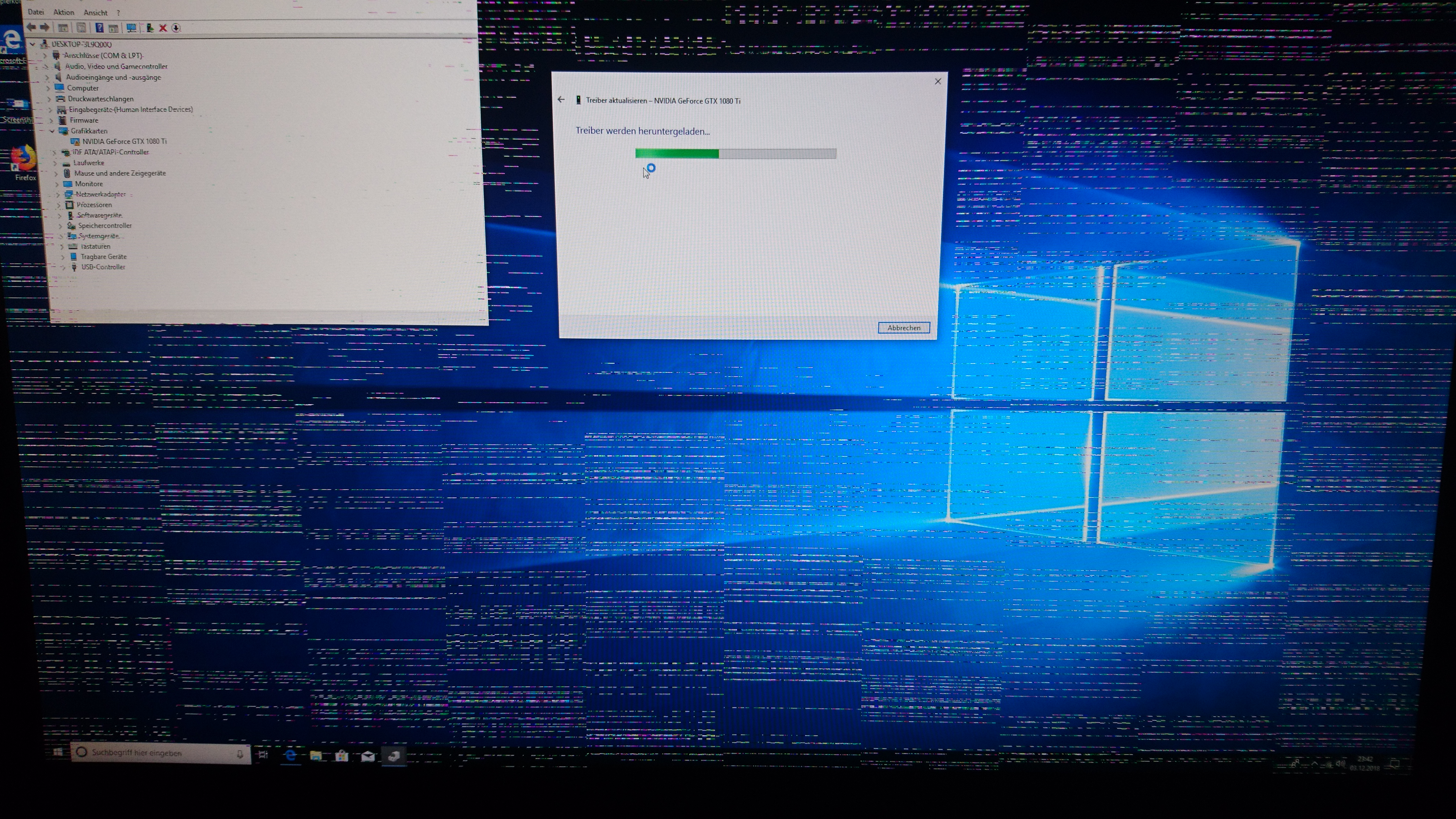 Jedesmal, wenn dann der Treiber installiert wurde von Windows oder direkt von der Nvidia-Seite war immer die gleiche Situation. Siehe Bild mit As Rock. Bei einem Screenshot, welches ich einmalig machen konnte sah man nichts von den Anzeigefehlern, dies ist ebenfalls im Anhang. Bei den Bilder, bei denen man die Anzeigefehler sieht, habe ich mit dem Handy geschossen.