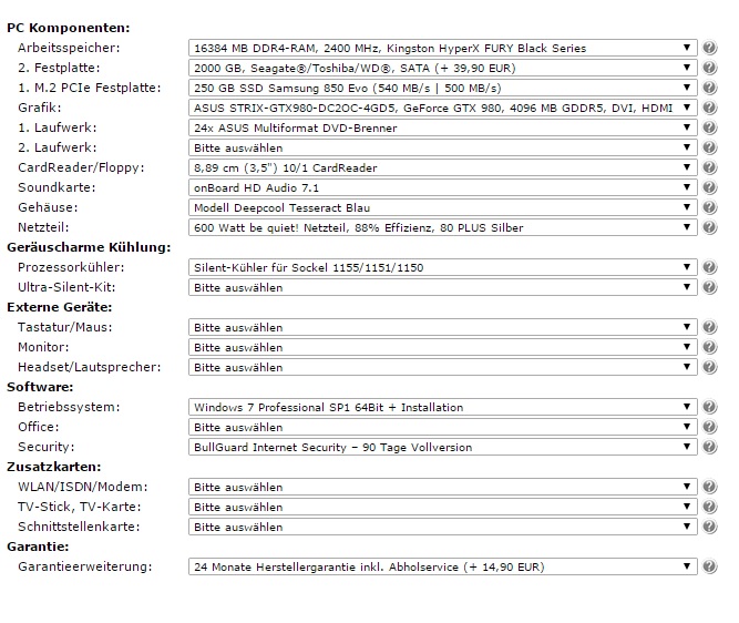 Zusätzlich zu dem PC kommt wie bereits gesagt noch ne Tastatur und ein Bildschirm. Das Paket bestehend aus PC, Tastatur und Bildschirm zusammengerechnet sollte dann im Bereich meines Budgets liegen. Maus und Headset habe ich noch.