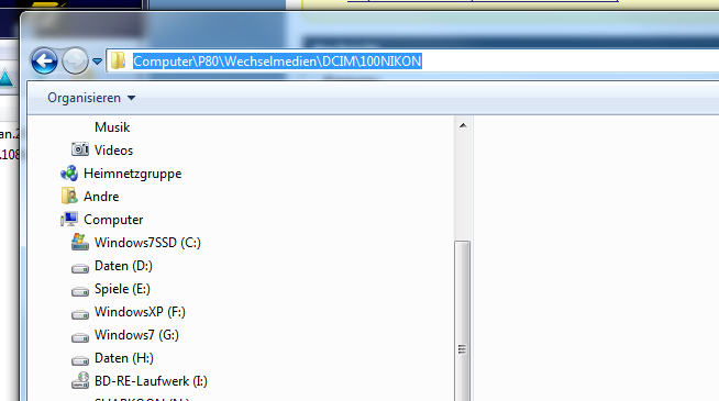 Nach langem hin-und-her habe ich endlich Zugriff auf die Bilder im Speicher der Nikon Coolpix P80 (meines Vater) bekommen.
