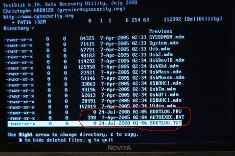 Ich habe mir noch einmal die Verzeichnisse angeschaut (siehe Bild 1 DEL UTILITY) da sind zwei Dateien die ich am 24.07.08 erstellt haben muß. BOOTLOG.prv und BOOTLOG.TXT Beide Dateien haben 0 byte, könnte hier der Fehler liegen?