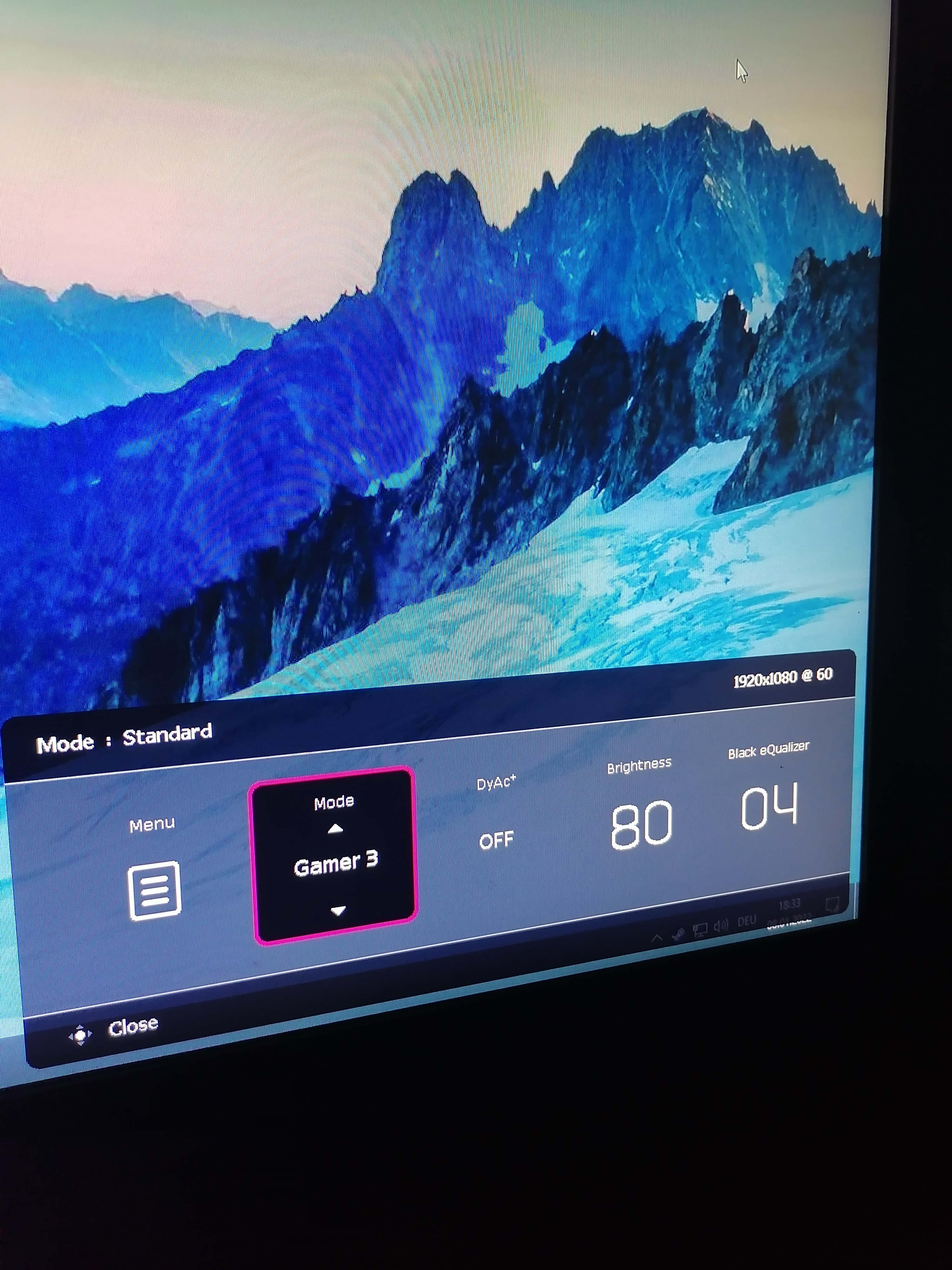 Wenn ich in den Benq Settings gehe sehe ich die Auflösung 1920x1080 @60.