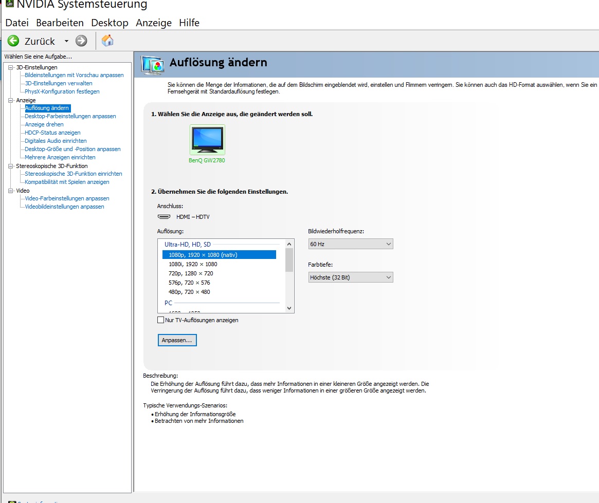 BenQ GW2780 und die Einstellungen