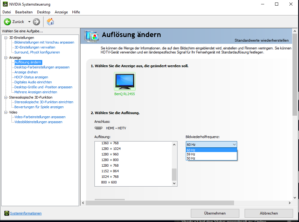 Zu meinem Erschrecken musste ich beim stöbern in meiner Nvidia Systemsteuerung feststellen, dass der Monitor die ganze Zeit anstatt 144Hz auf 60Hz läuft was für mich als Gamer fast schon einer Katastrophe gleicht.