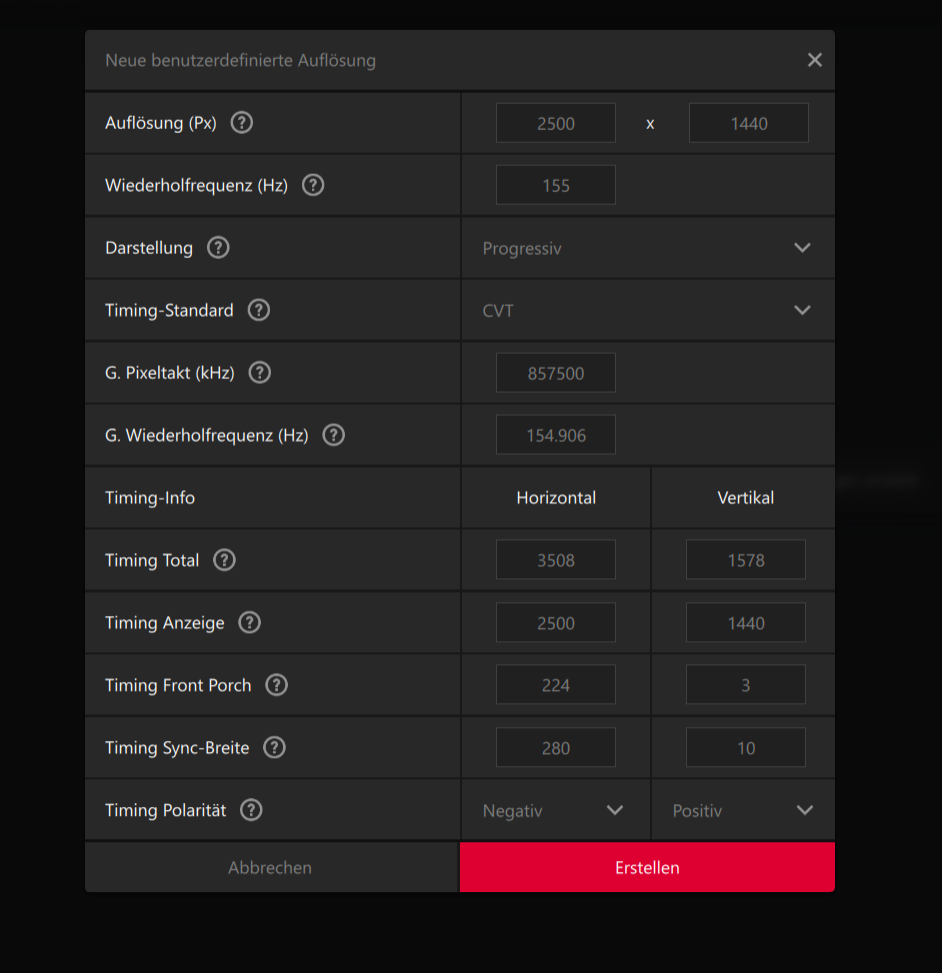 kann jemand 155 Hz 2500x1440 in der Nvidia Systemsteurung simulieren und mir die Werte zeigen?