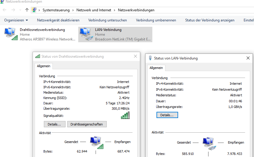 Hatte bisher immer die Verbindung ins WWW per WLAN aufgebaut. Um aber zu prüfen, ob sich ein Wechsel von WLAN zu LAN überhaupt lohnt, ob ein Gewinn zu verzeichnen wäre, möchte ich die Verbindung über Kabel mal ausprobieren.