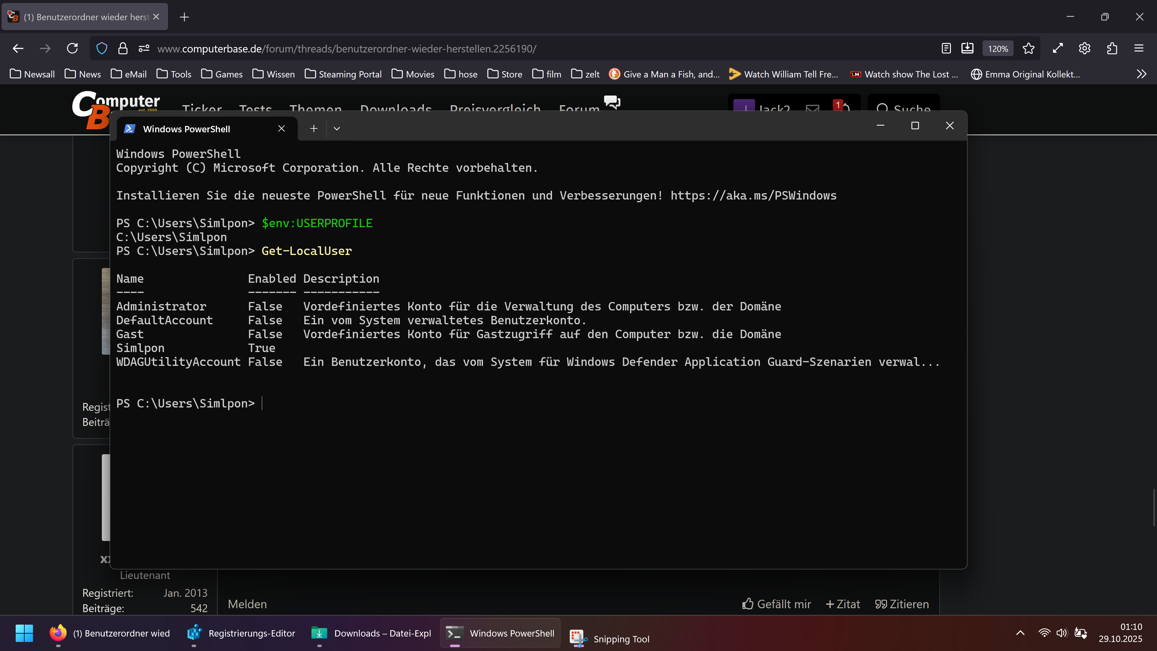 CoMo schrieb:Das Profil ist also noch vorhanden. Was gibt$env:USERPROFILEin der Powershell aus?