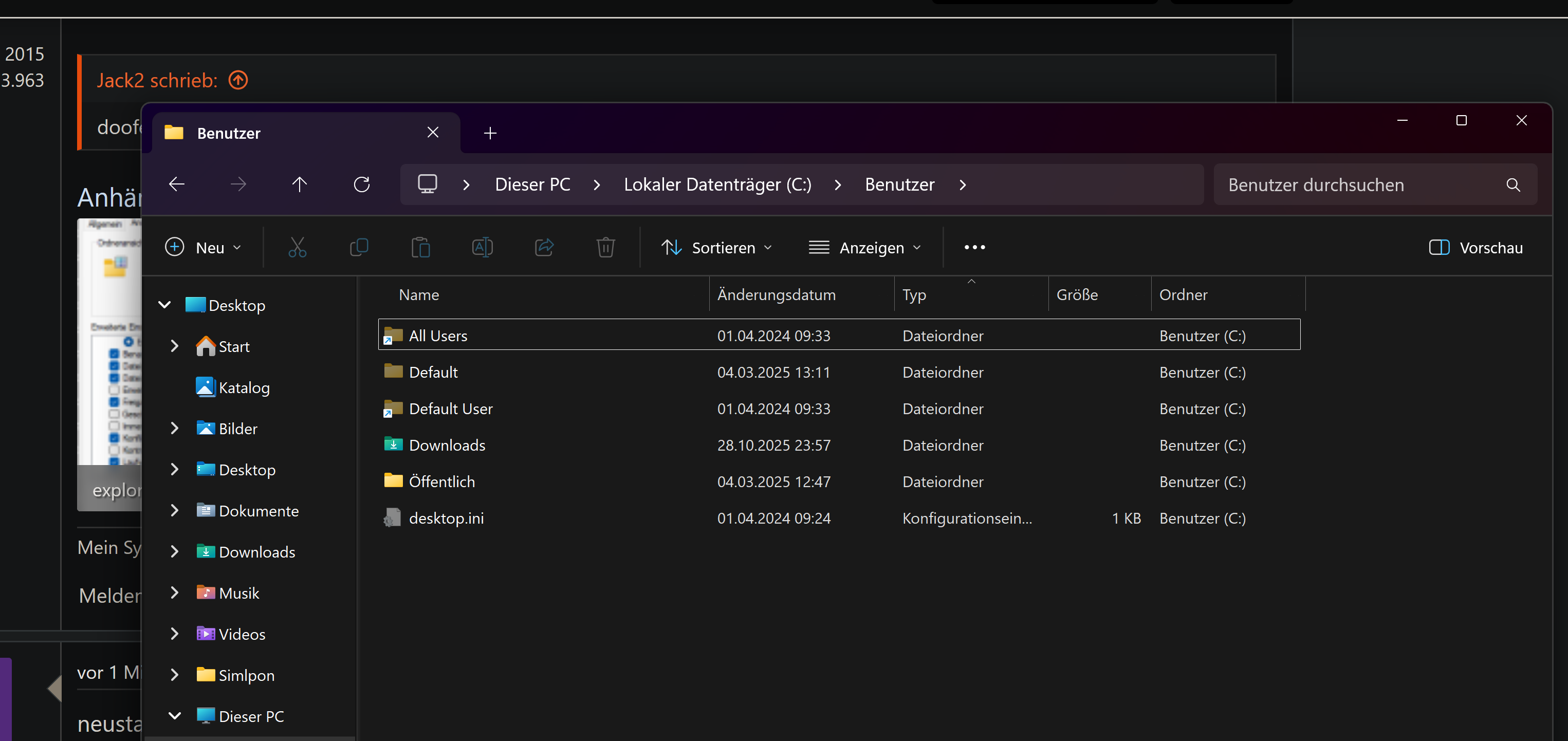 unterschiedlich, je nach Fenster kommt ein andere Ordner, es gib unter Simplon / zwei Ordner mit DownloadsCoMo schrieb:Und wohin zeigt derSimlponOrdner, der da links in der Leiste zu sehen ist?