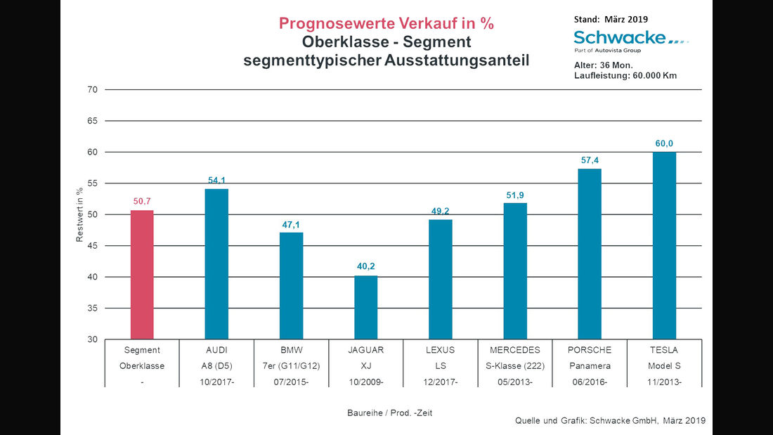 Bezüglich Wertverlust, Tesla Model S haben in der Tat den geringsten im Vergleich zu Konkurrenz in der Preisklasse: