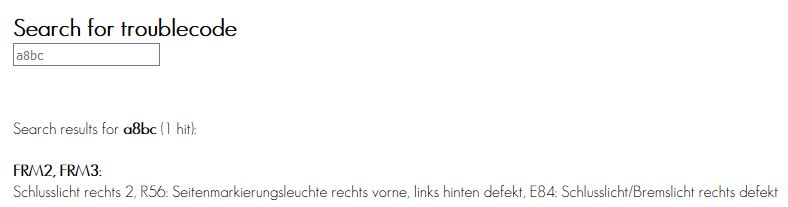 Beim Fehlercodes auslesen kommen dann z.B. offenstliche Fehlermeldungen bei rum, die ggf der BC anzeigt, oder man selber sieht (kaputtes Leuchtmittel z.B) oder ggf. irreführende Fehlercodes oder solche die man ignorieren kann. Natürlich genauso Dinge, die einem im Falle eines Defektes weiterhelfen können.