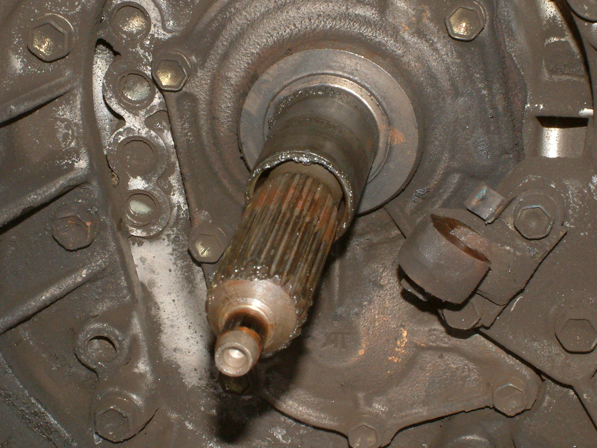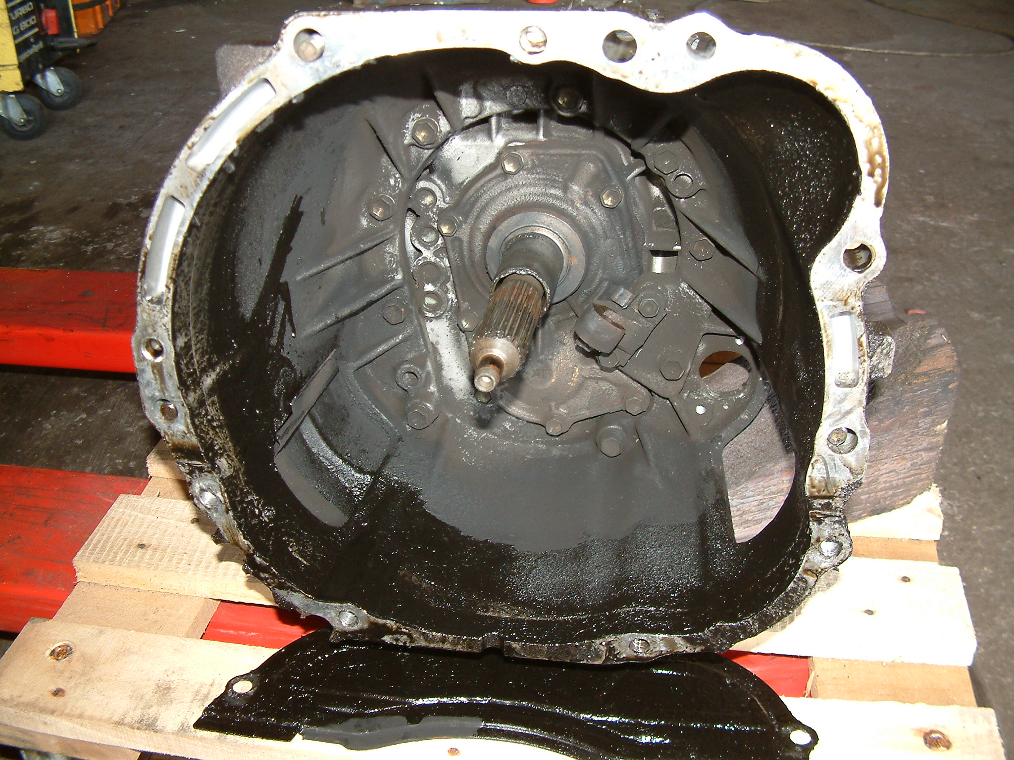 Ich bin mir ziemlich sicher, in die Getriebeglocke gehört weder Abgasruß, noch Öl. Die Antriebswelle sieht "fantastisch" aus.