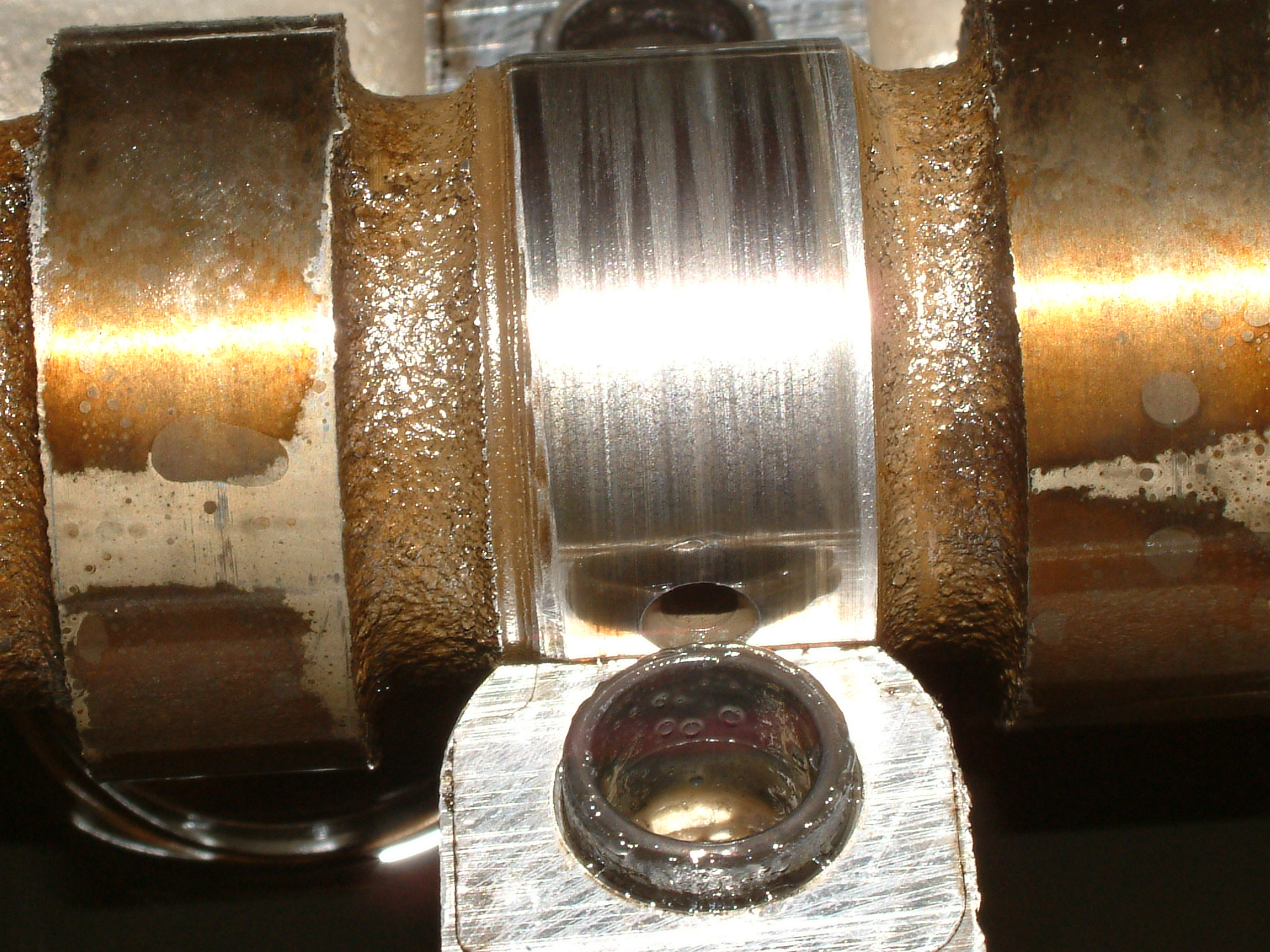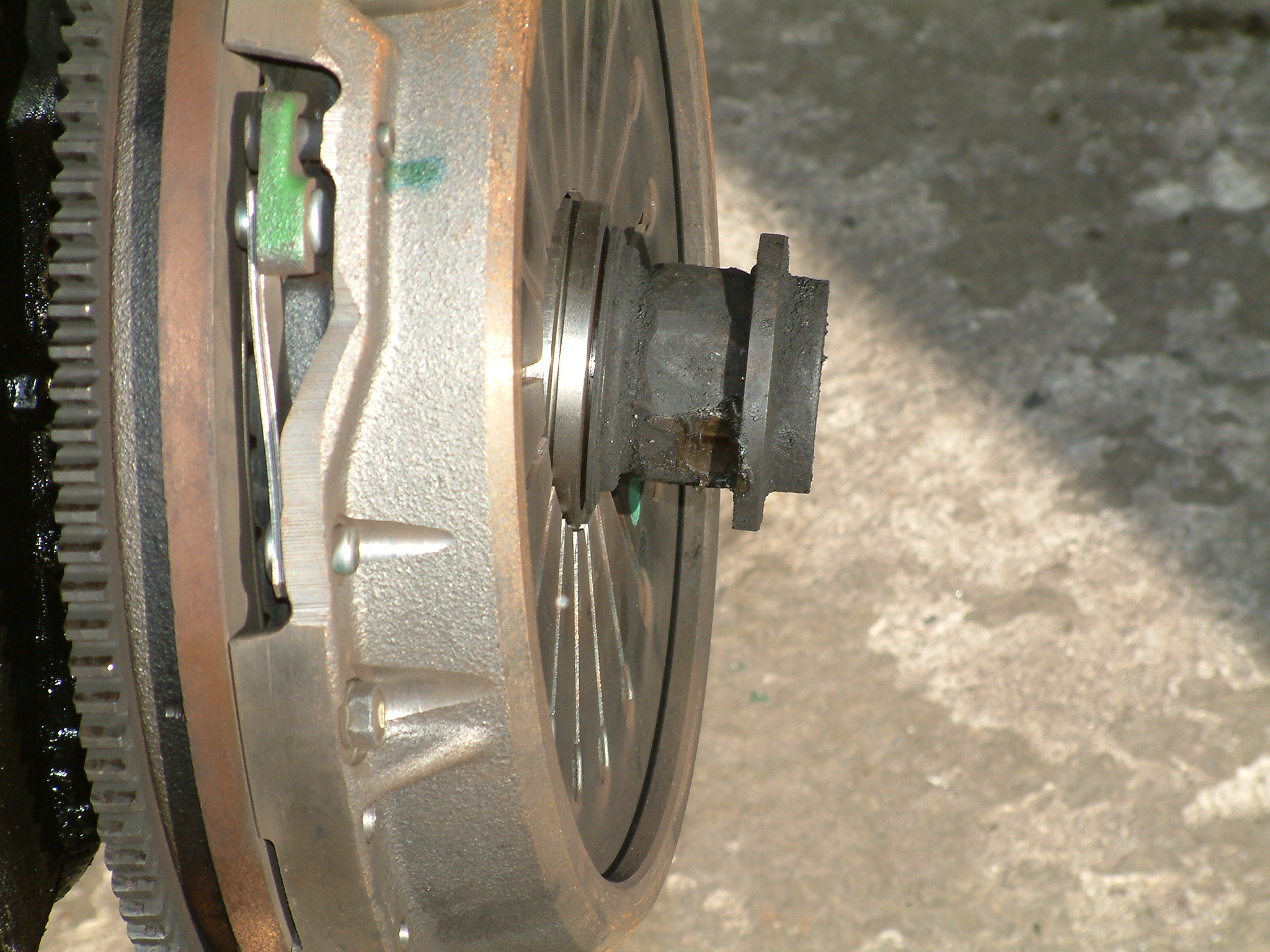 Zusammengebaut hing das Schwungrad der Kupplung noch gerade, hat auf der Welle aber dennoch fiese Spuren hinterlassen. Der Grund war folgender: