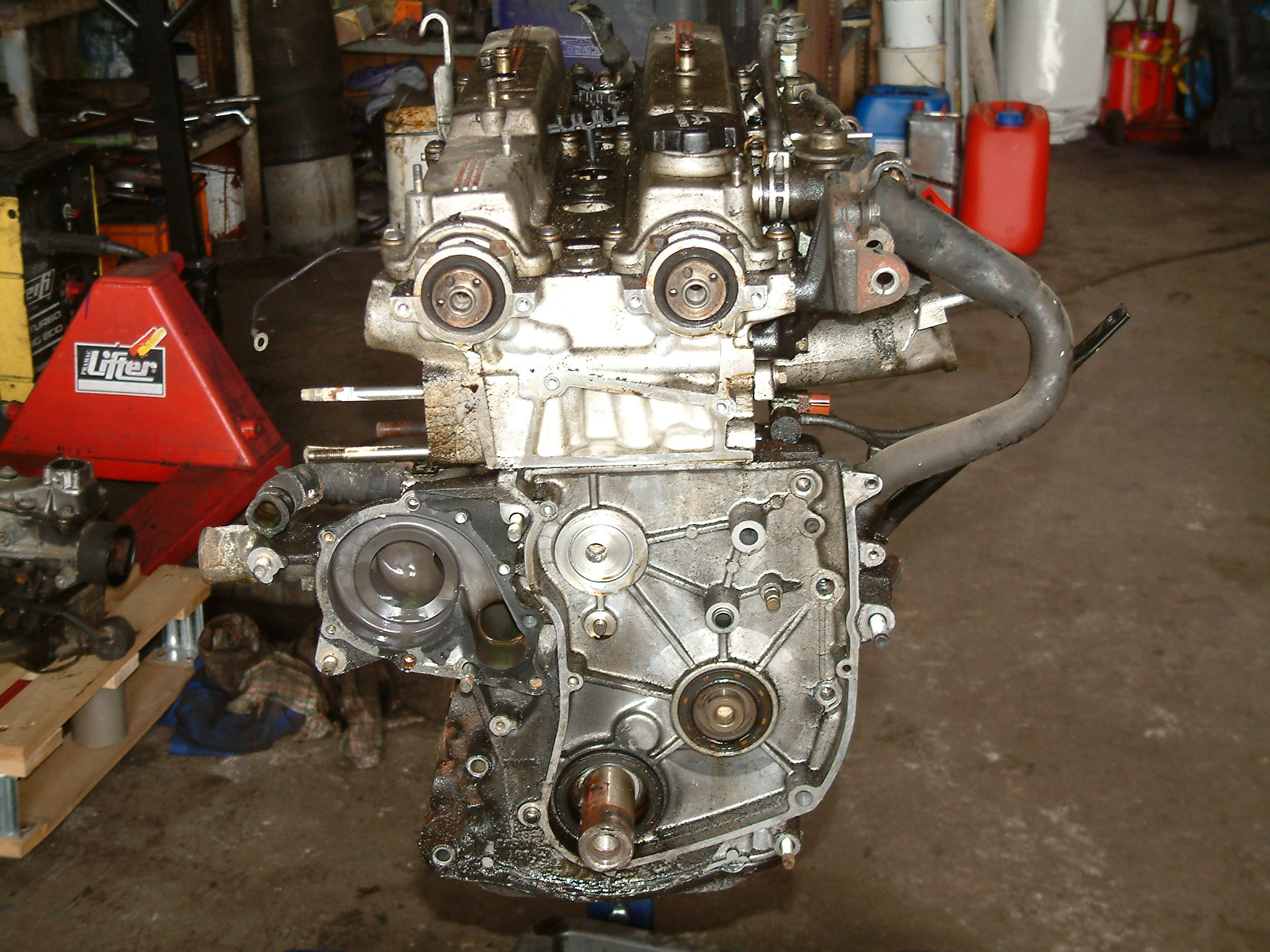Raus ist der 6-Ender... so langsam wird einem klar, wie der Zustand des Motors wirklich sein muss: das schwarze ist alles Öl!