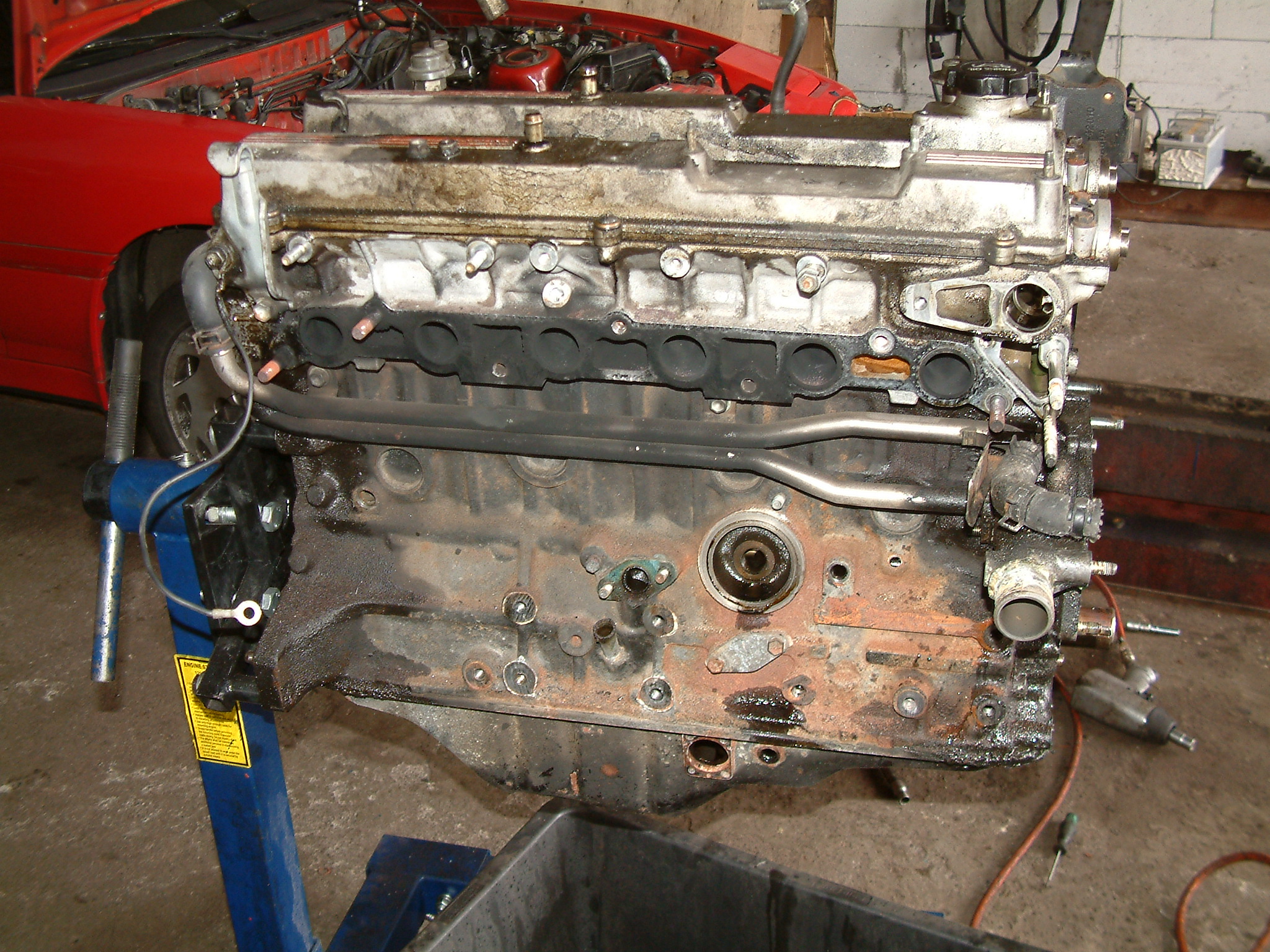 Öl, Öl und noch mehr Öl. Die Supra kommt mit einem Tank ca. 450-550 Kilometer weit je nach (gediegener) Fahrweise. Damals habe ich, als ich sie die ersten 20.000 Kilometer bis zur Restauration gefahren habe, bei JEDER Tankfüllung einen Liter Castrol Racing 10W60 nachgekippt... ganz offensichtlich ist da nicht immer alles drin geblieben.