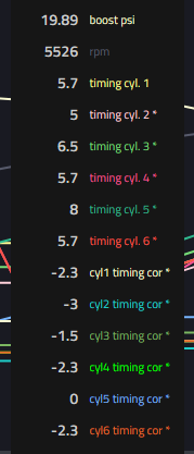 hier ein vergleich der Zündkorrektur zwischen meinem Log und dem eines Motors gleiche Stage aber mit schlechtem sprit