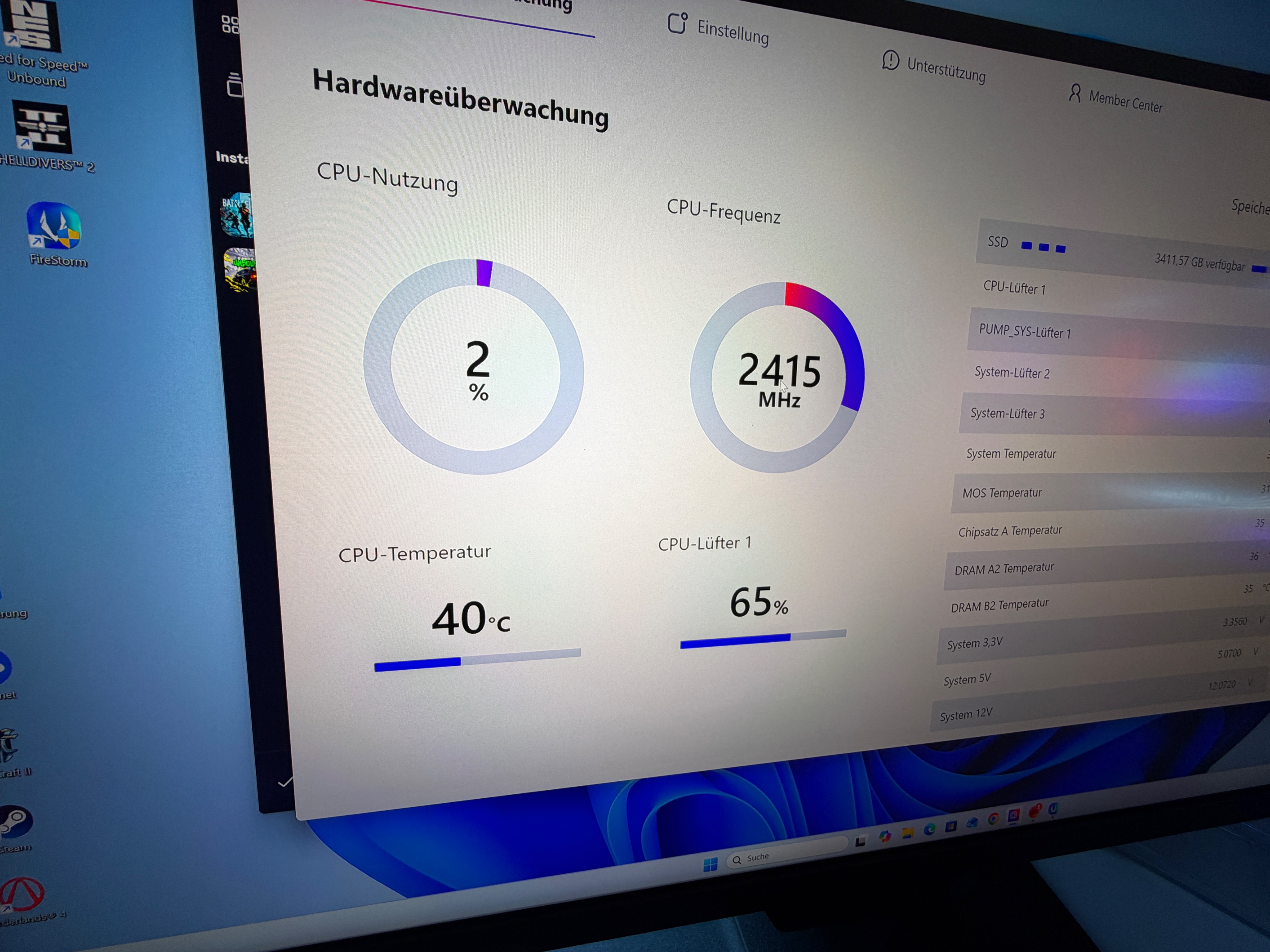 Der RAM ist ein Kingston 6000 CL40 XMP der aber vom Board aus mit 6000 CL 32-40-40-86 stabil läuft. Zumindest war ein Profil im Board hinterlegt.
