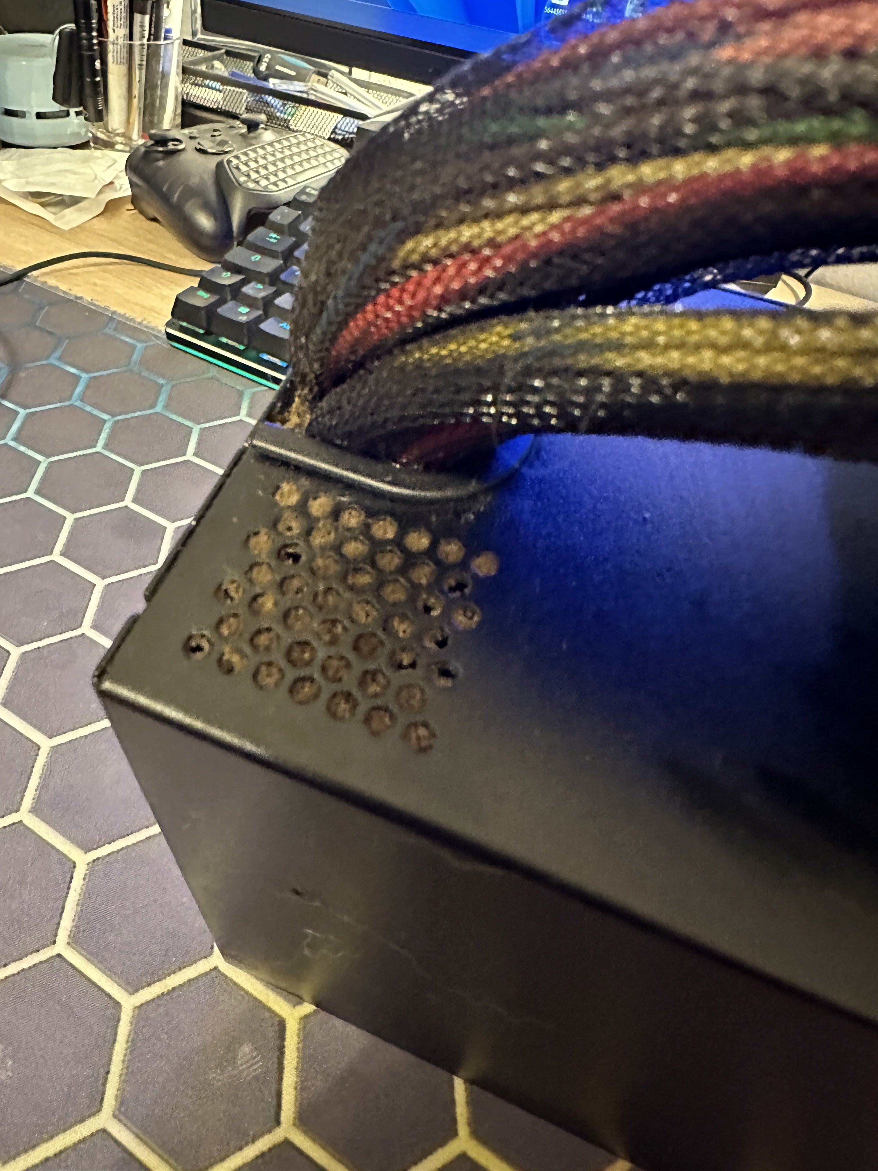 Eventuell Tacho-Signal, vielleicht auch der Temp-Sensor verstaubt, oder ein defektes Teil auf dem Netzteil was sofort sehr warm wird... eventuell mal während das Netzteil von allen Gerätschaften abgesteckt ist und der Lüfter manuell festgehalten wird, mit Druckluft auspusten.