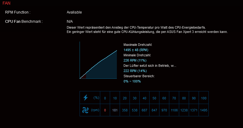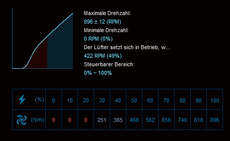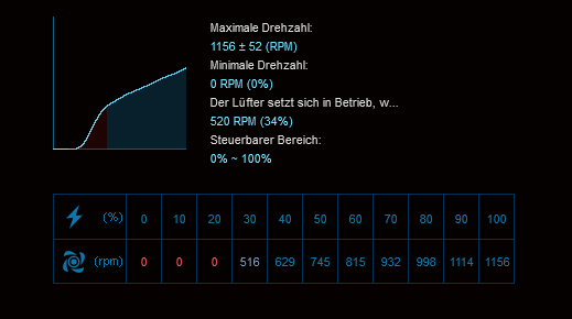 Bei allen ist ein Limit 300RPM eingestellt, sie drehen aber trotzdem 500-800. Mit dem Qfan Tuning kann man den Graph bzw. die Modi verstellen, aber sie drehen wenn dann nur lauter, aber nicht leiser.