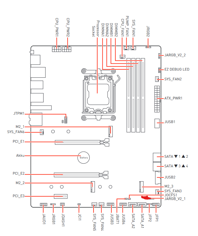 Jetzt habe ich das Kabel auf den unteren JARGB V2_1 gesteckt ist auf dem Bild rot makiert, jedoch kann ich in der MSI Software meine Lüfter nicht steuern. Jetzt vermute ich den HUB vom Gehäuse ob der eventuell überhaupt nicht komtatibel ist mit der MSI Software und nur auf den Gehäuseknopf reagiert.